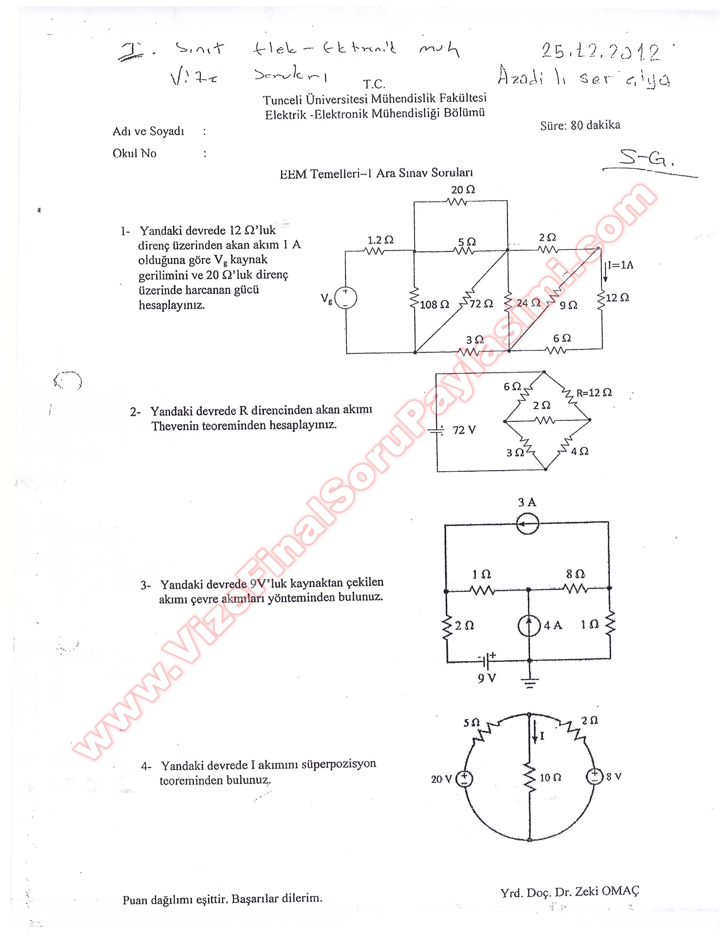Vize ve Final Soruları / Tunceli Üniversitesi / E.E.M. Temelleri -1