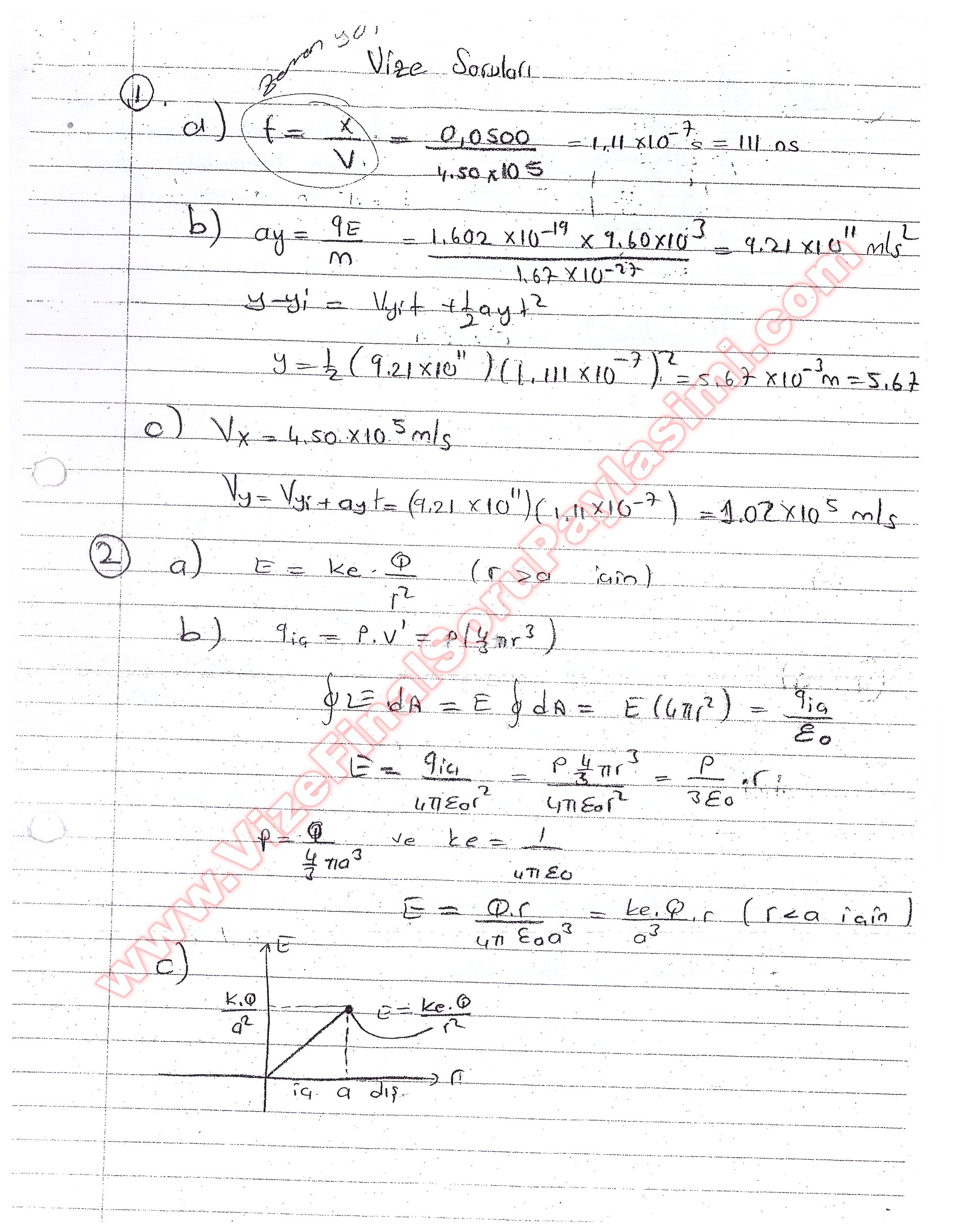 Vize ve Final Soruları / Tunceli Üniversitesi / Genel Fizik -2