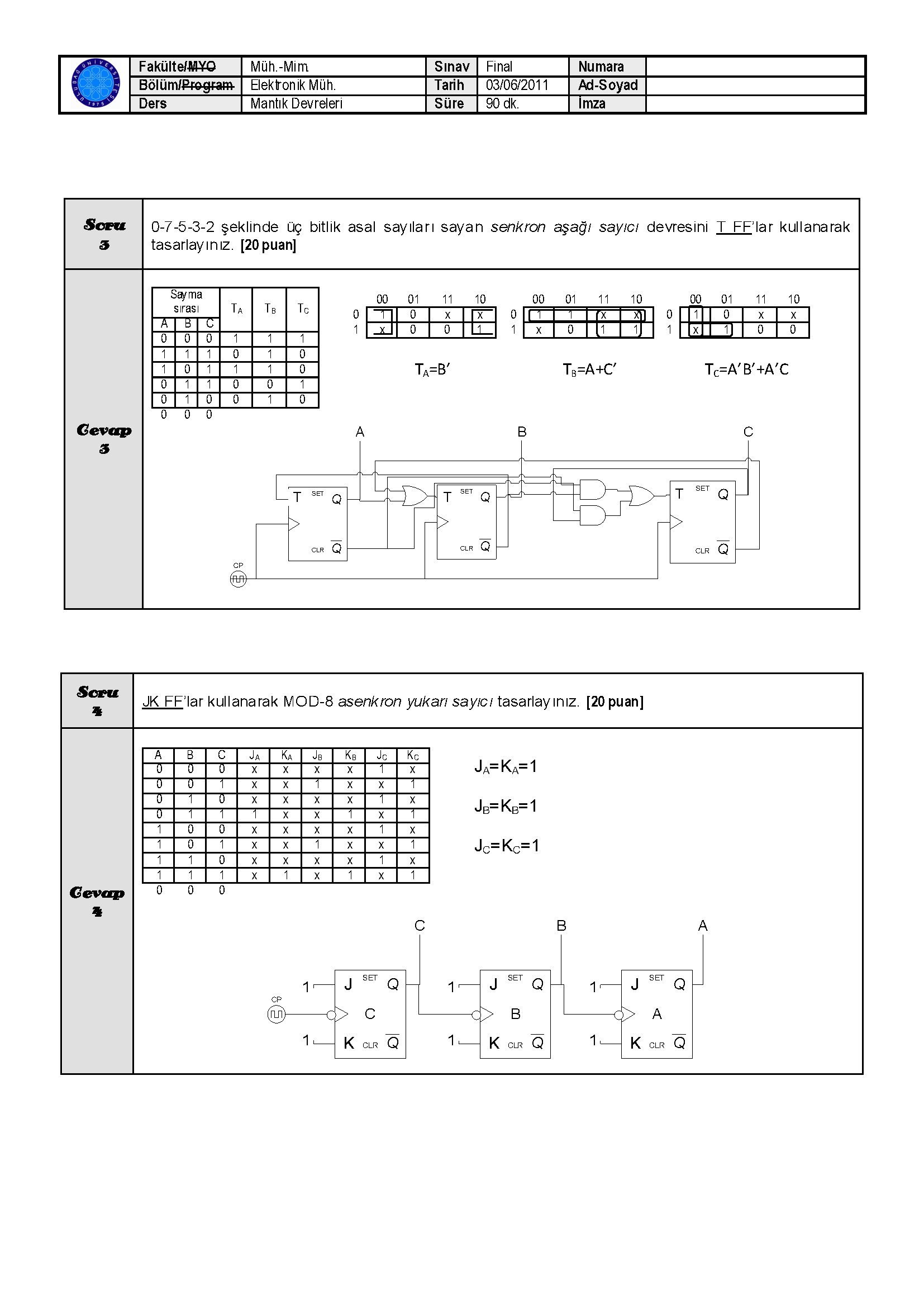 Vize ve Final Soruları / Uludağ Üniversitesi / Mantık Devreleri Dersi