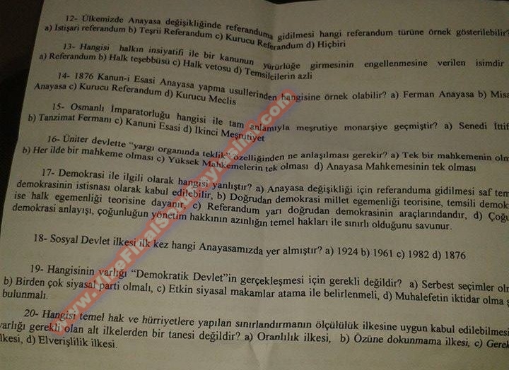 Vize ve Final Soruları / Yüzüncü Yıl Üniversitesi / Anayasa Hukukuna Giriş Dersi