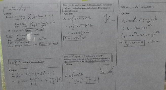 Vize ve Final Soruları / Fırat Üniversitesi / Matematik-2