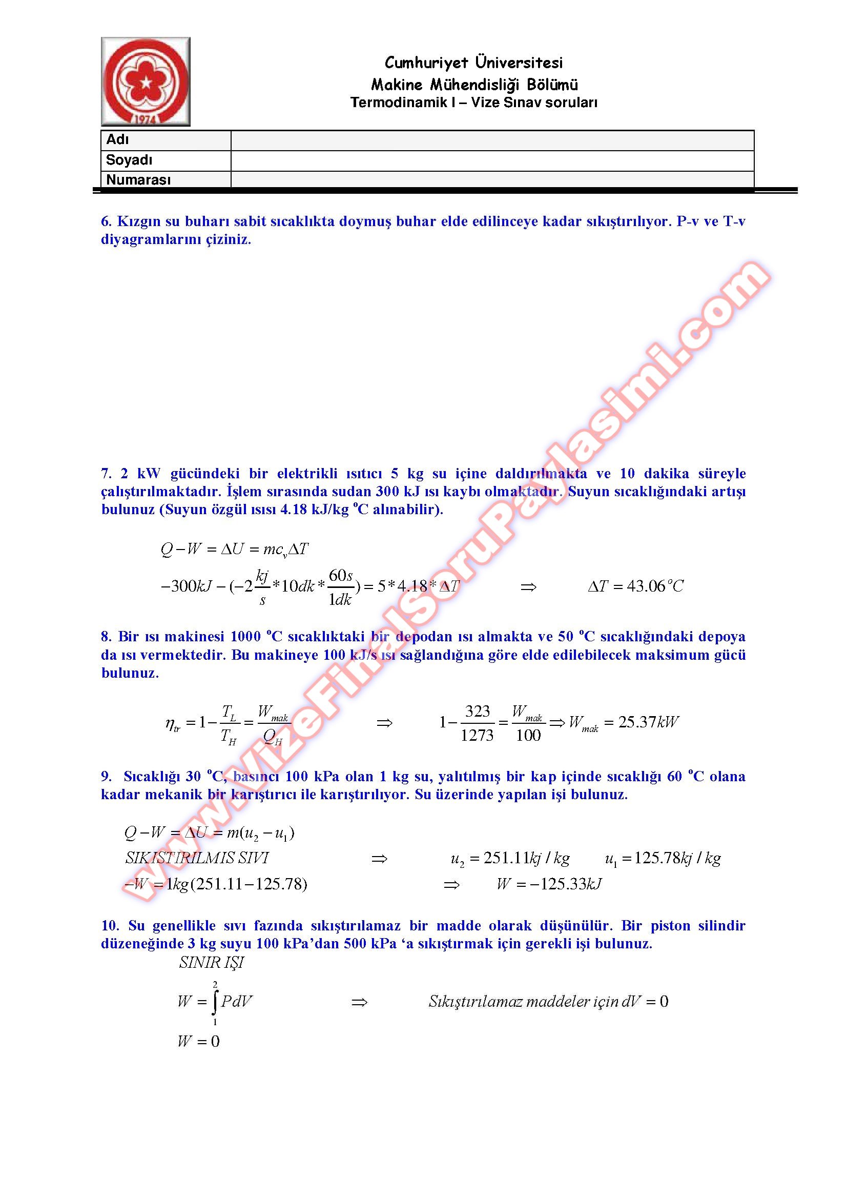 Cumhuriyet Üniversitesi Termodinamik-1 Vize Soruları-2 17-07-2014, 13:49