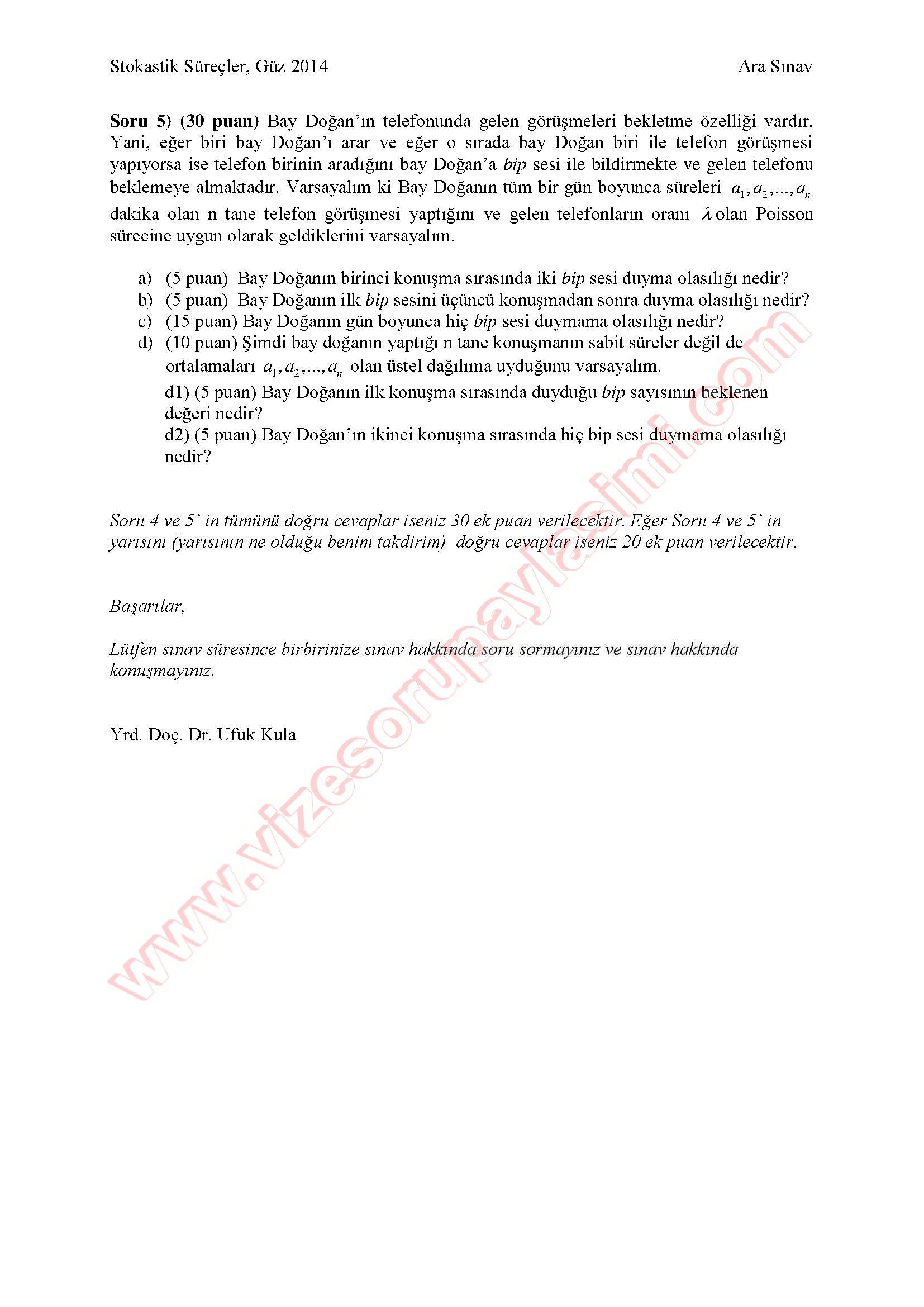 İstatistik 2 Vize Soruları-2005 4-11-2014, 13:36