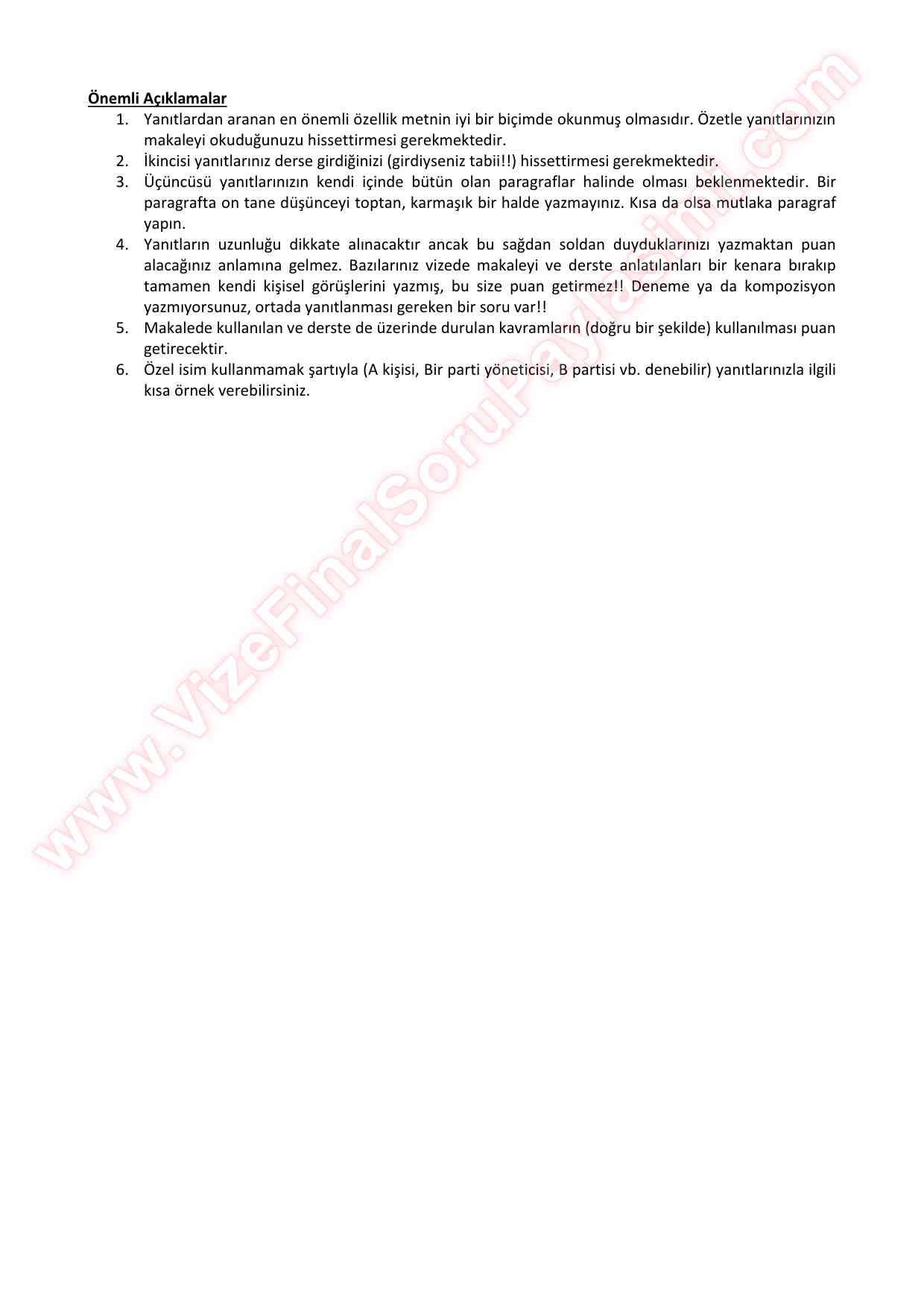 Siyaset Bilimi-2 Final Soruları-2013 18-01-2015, 00:45