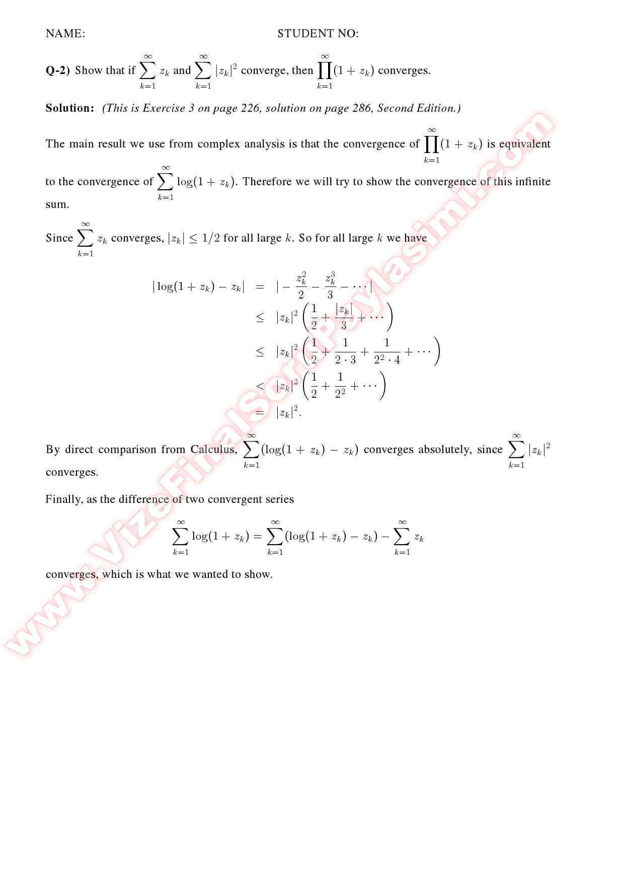 Complex Analysis2 Final Solutions -2011 11-07-2015, 13:30