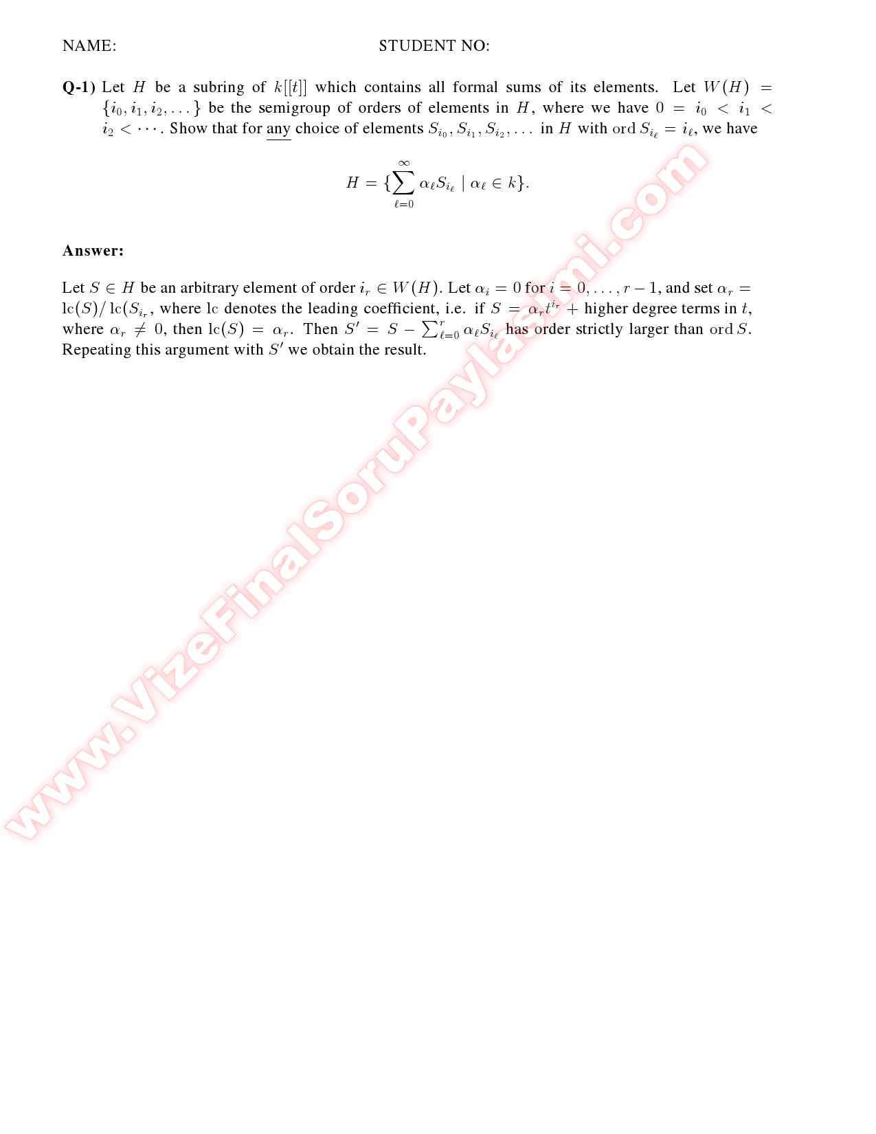 Vize ve Final Soruları / Bilkent Üniversitesi / Algebraic Geometry Lesson