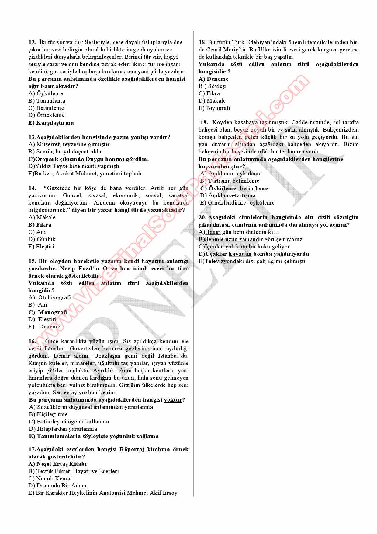 Türk Dili ve Edebiyatı -2 Final Soruları -2015 23-06-2015, 22:12