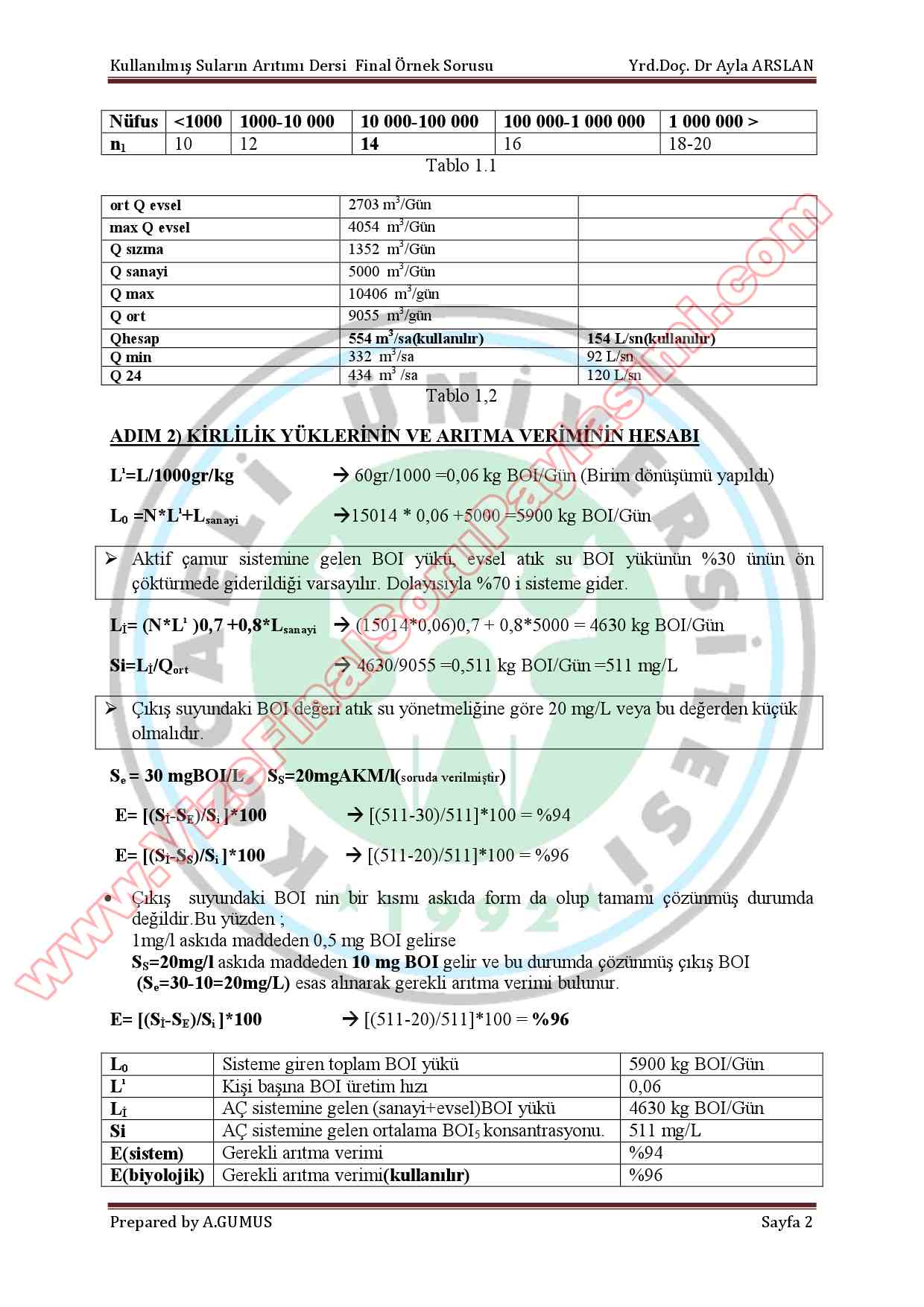 kullanilmis sularin aritimi dersi final sorulari cevaplari cozumleri kou kocaeli uni