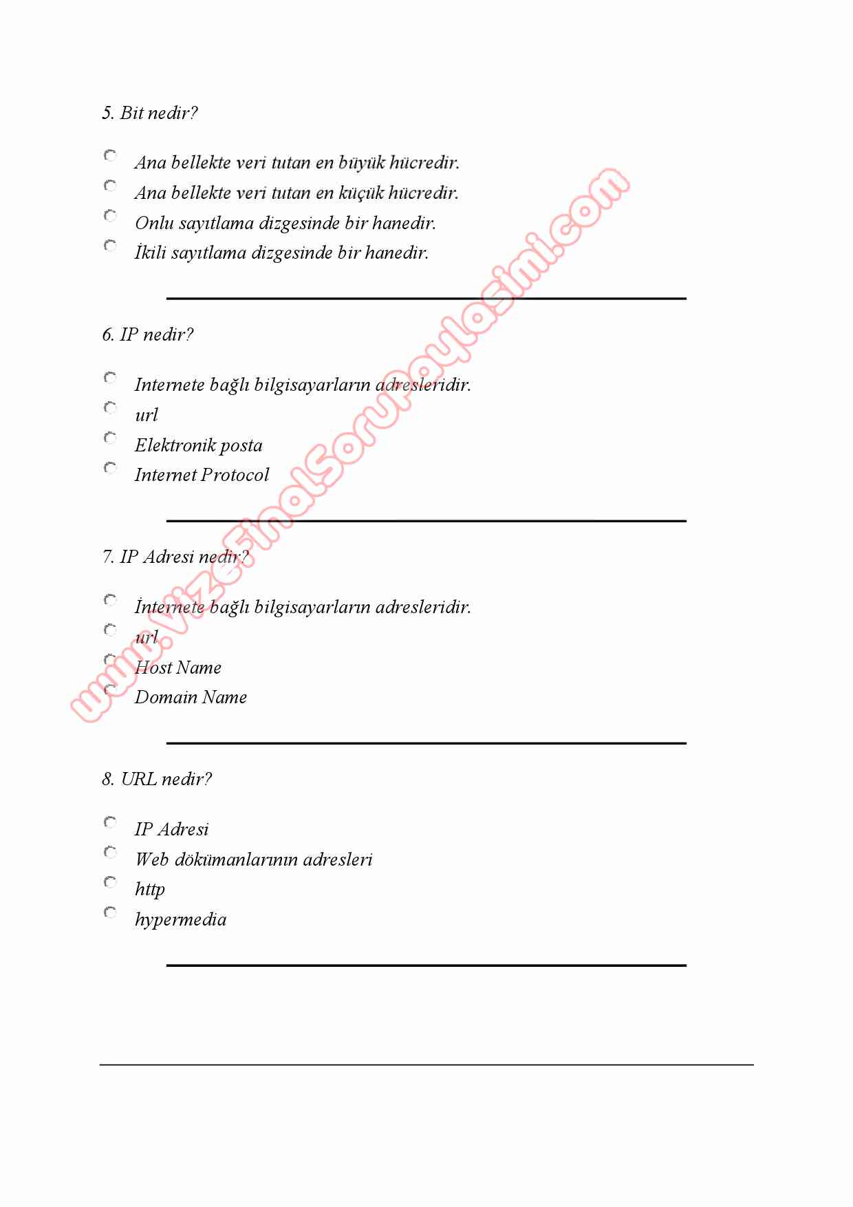 İnternet Programcılığı -1 Test Soruları 31-07-2015, 23:23