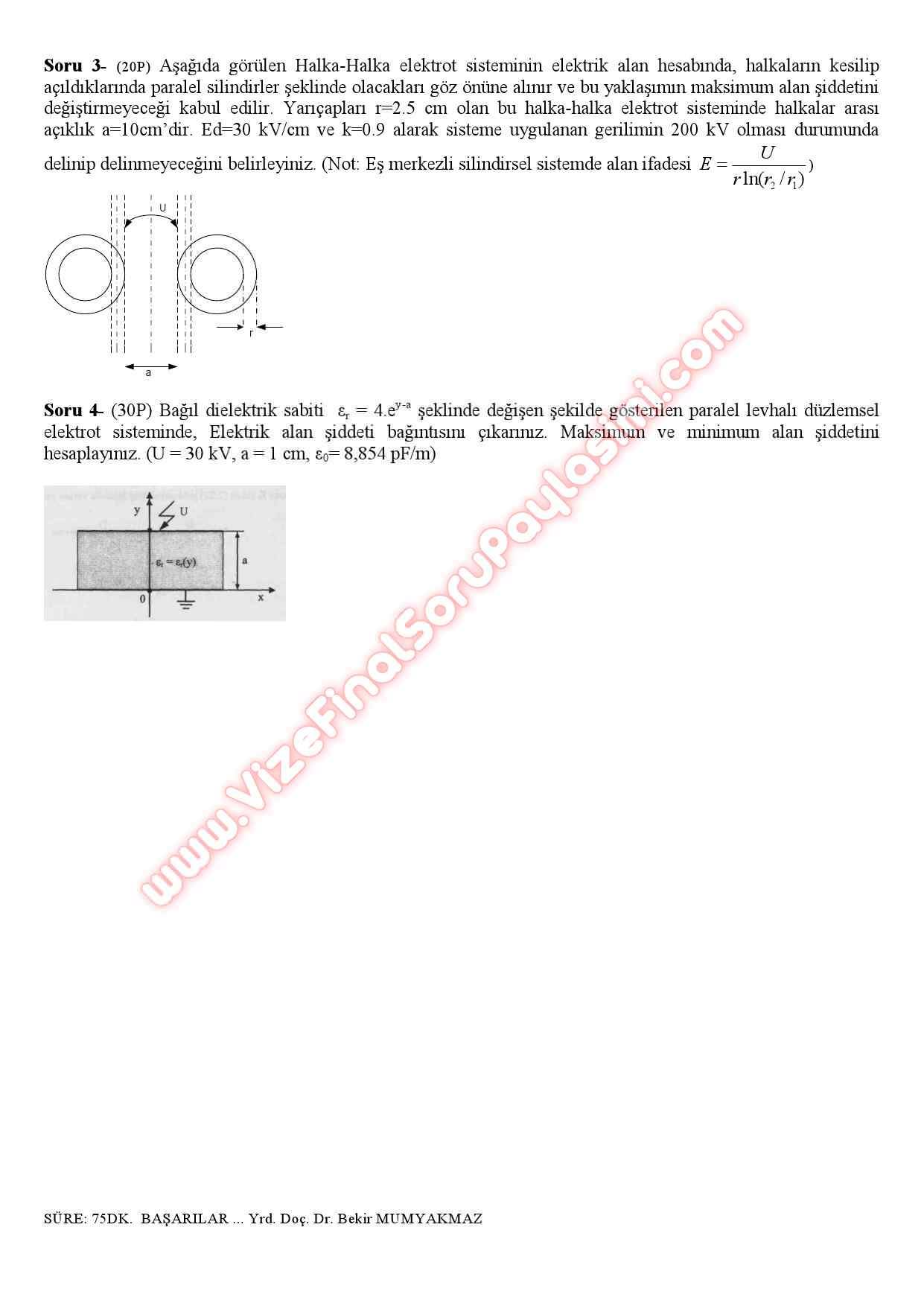 Yüksek Gerilim Tekniği Final Soruları -2011 2-08-2015, 23:09