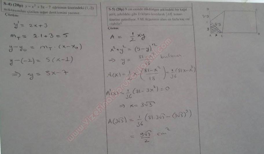 Matematik -1 Vize Soruları ve Çözümleri (Yaz Okulu) 22-08-2015, 15:06