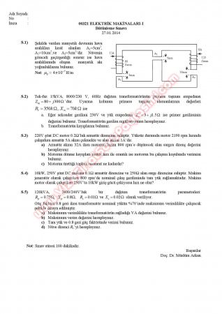Elektrik Makinaları -1 Bütünleme Soruları -2014 3-08-2015, 23:21