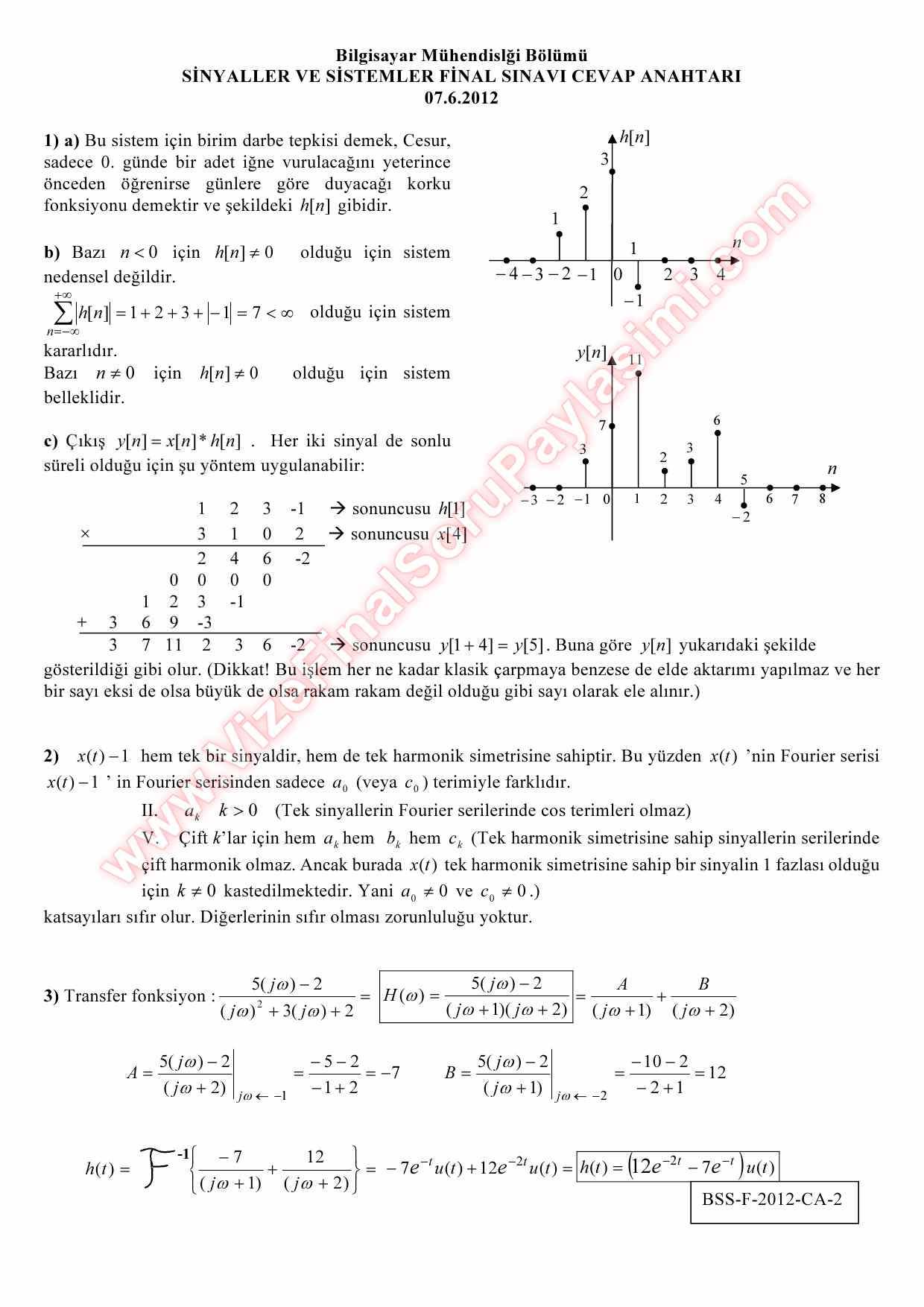 Sinyaller Ve Sistemler Final Soruları Ve Çözümleri Bahar - 2012