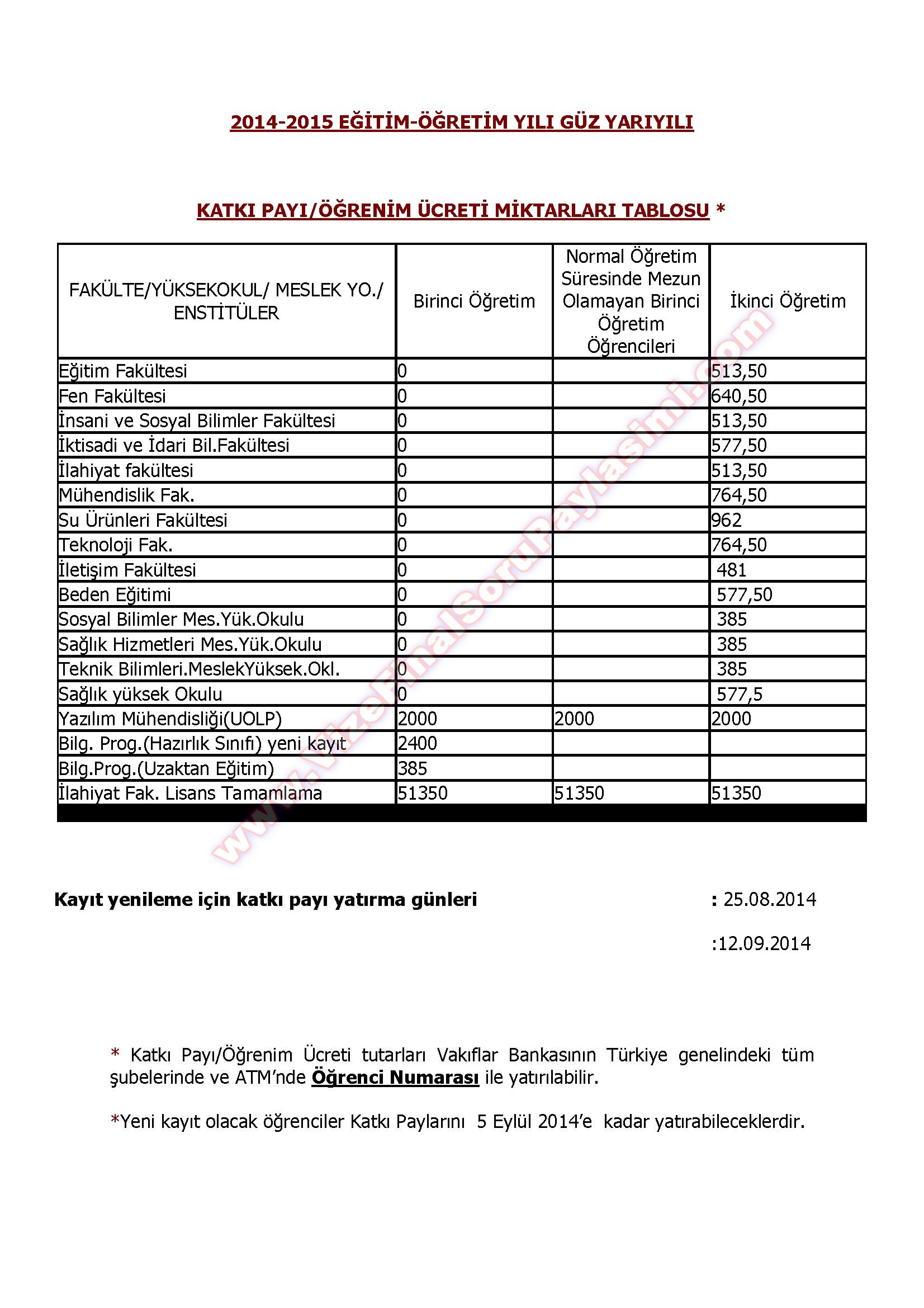 Harç Ücretleri 2014 - 2015 12-08-2014, 17:41