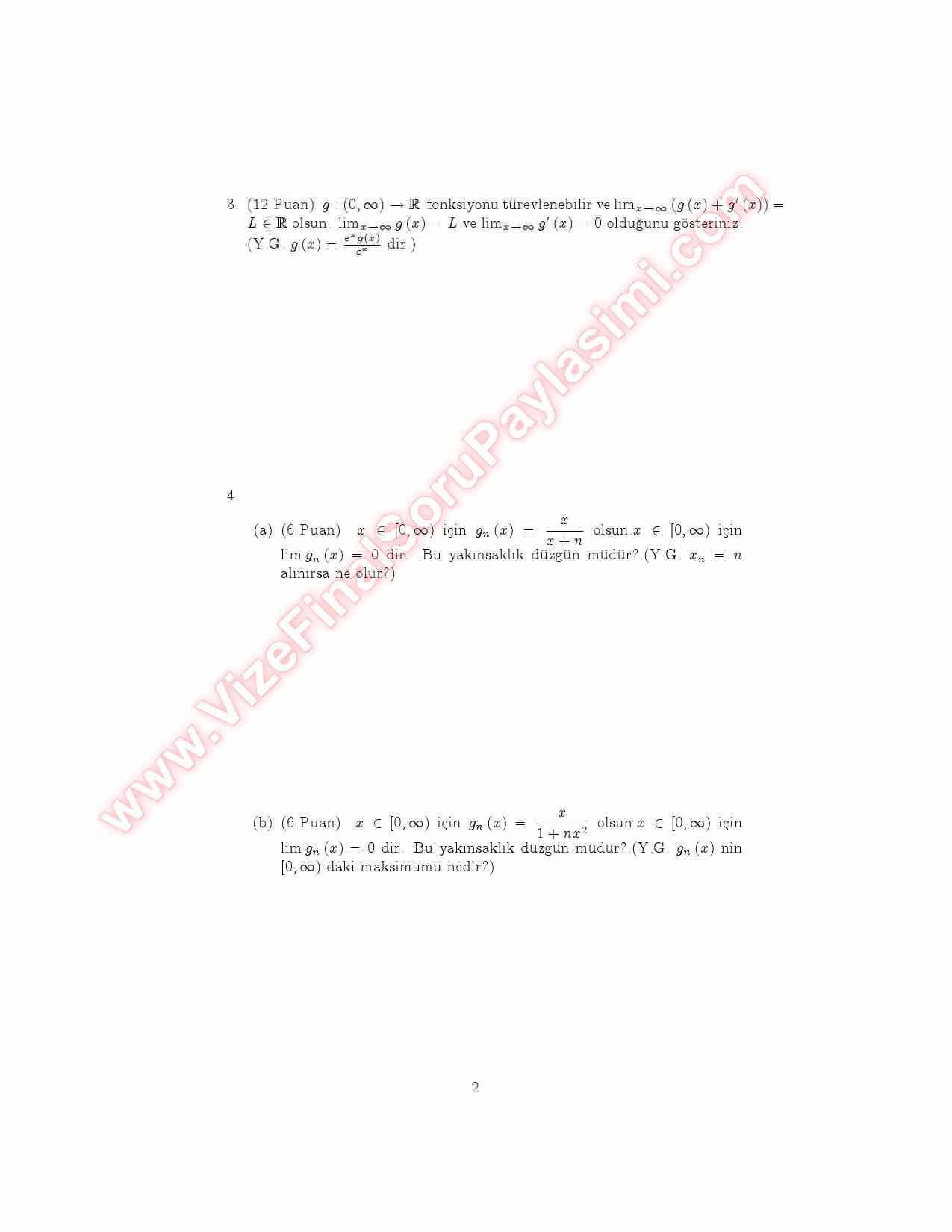 Vize ve Final Soruları / Çukurova Üniversitesi / Analiz -4