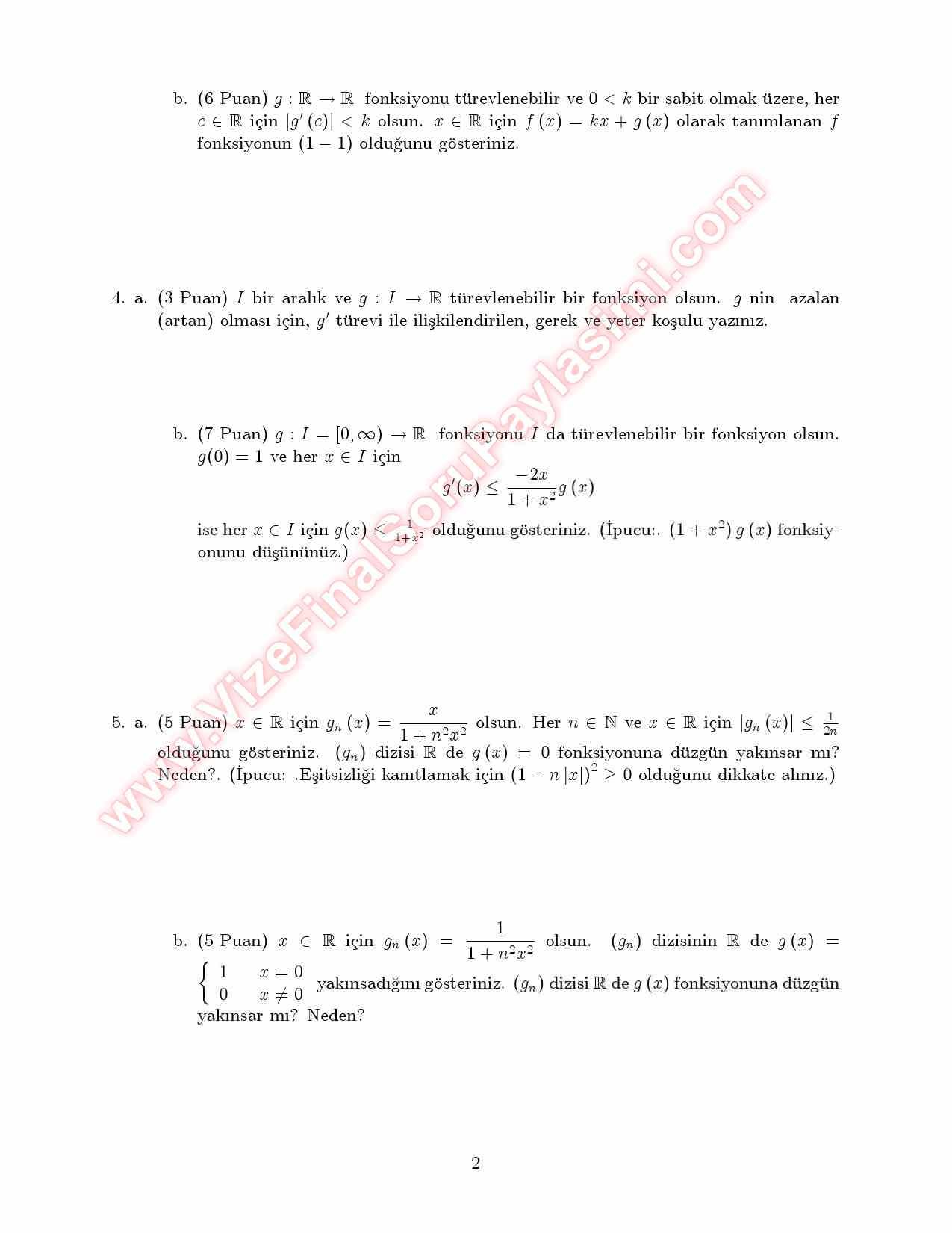 Vize ve Final Soruları / Çukurova Üniversitesi / Analiz -4