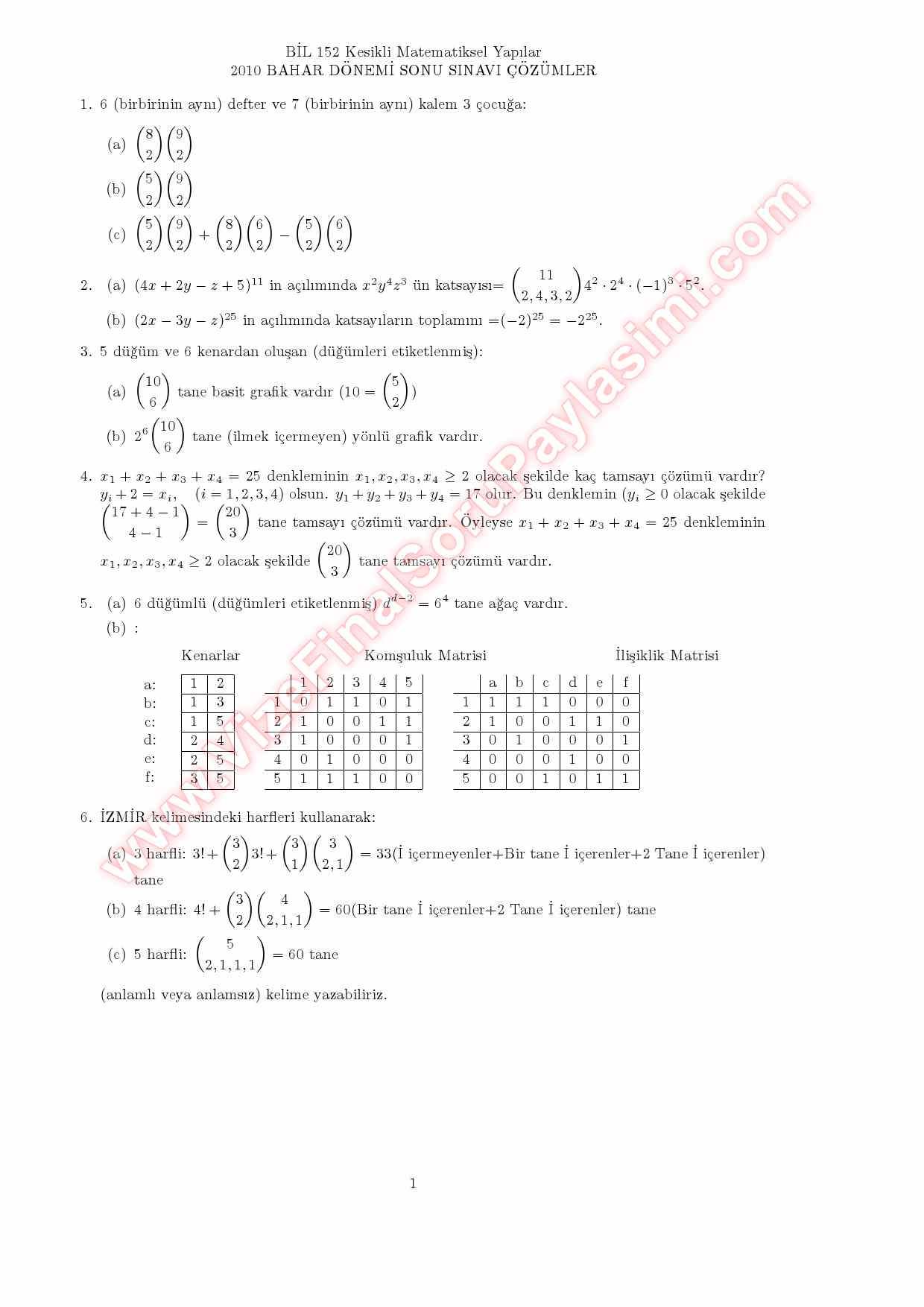 Kesikli Matematiksel Yapılar vize Soruları Ve Çözümleri 31-08-2015, 19:45