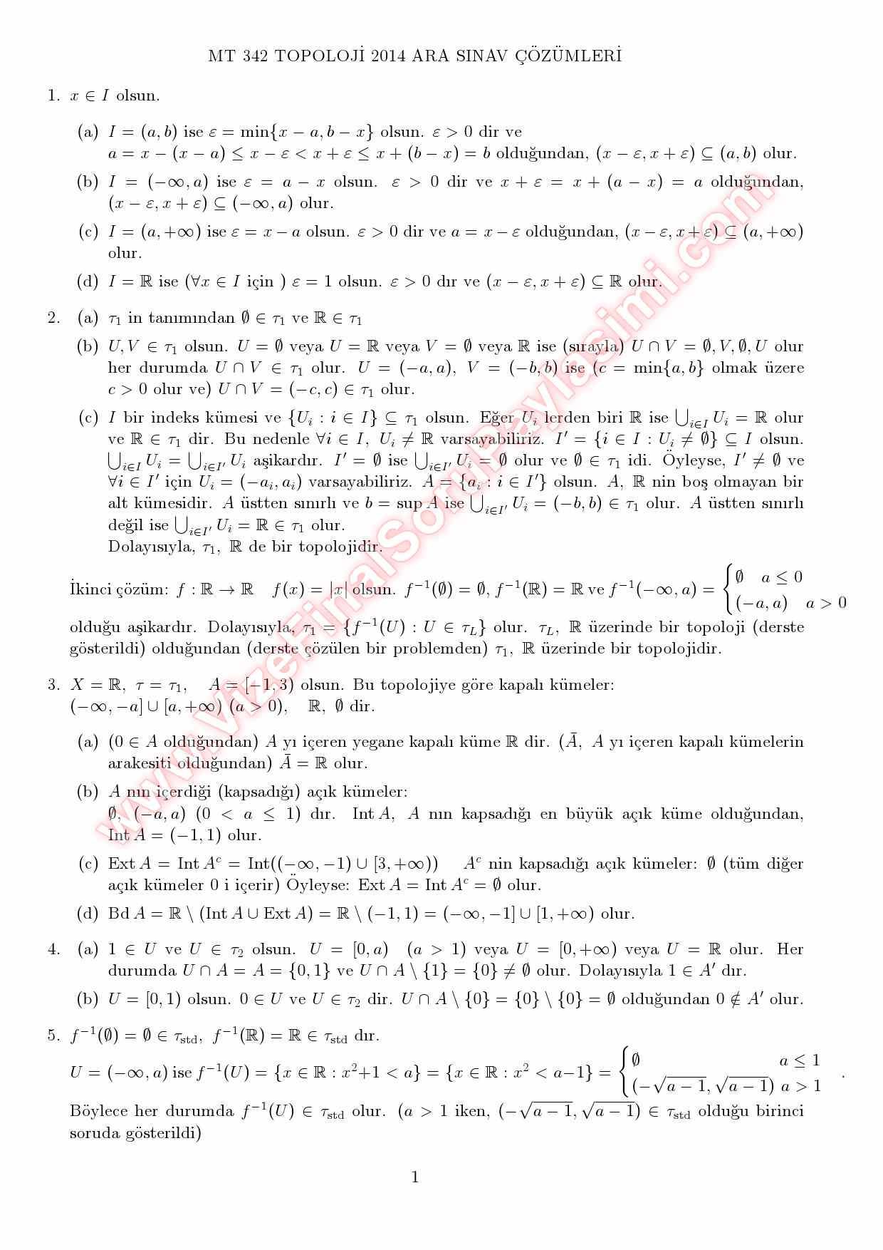 Topoloji Vize Soruları Ve Çözümleri -2014