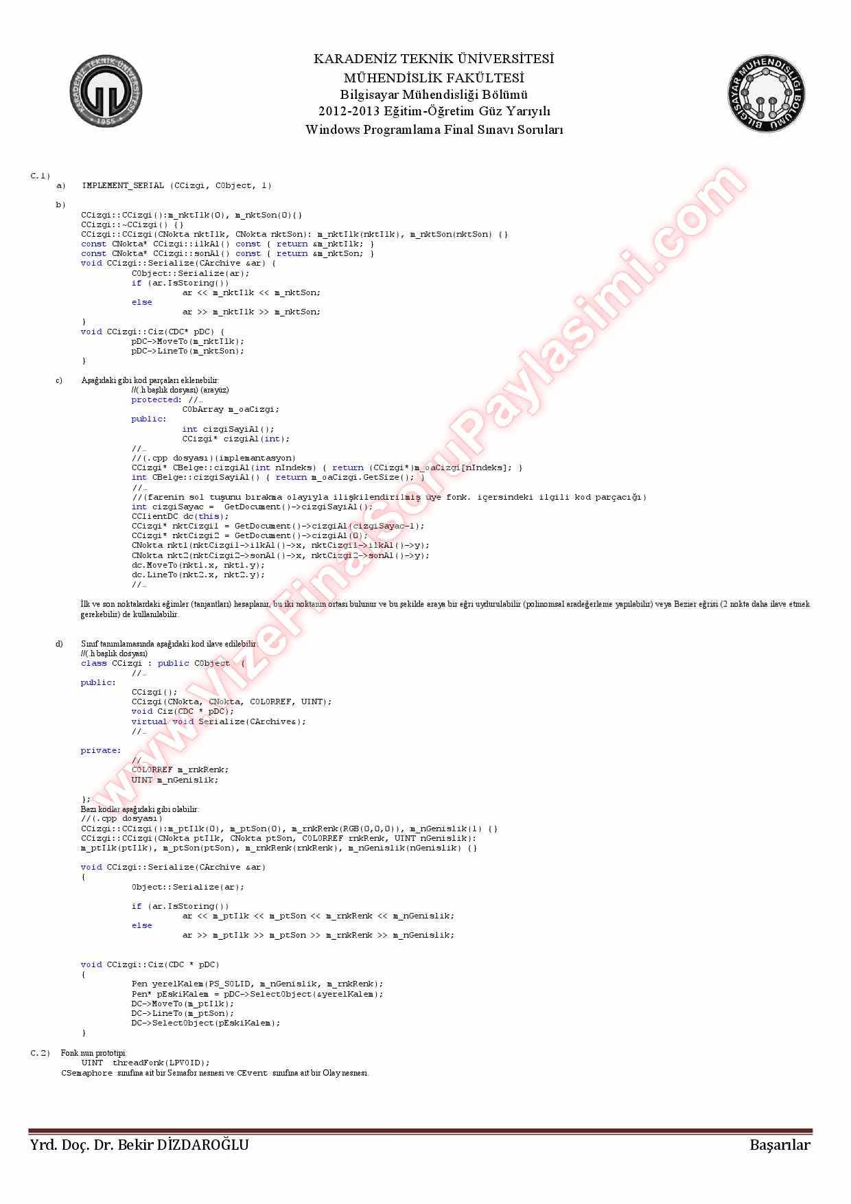 Windows Programlama Bütünleme Soruları Ve Çözümleri -2013 4-09-2015, 22:13