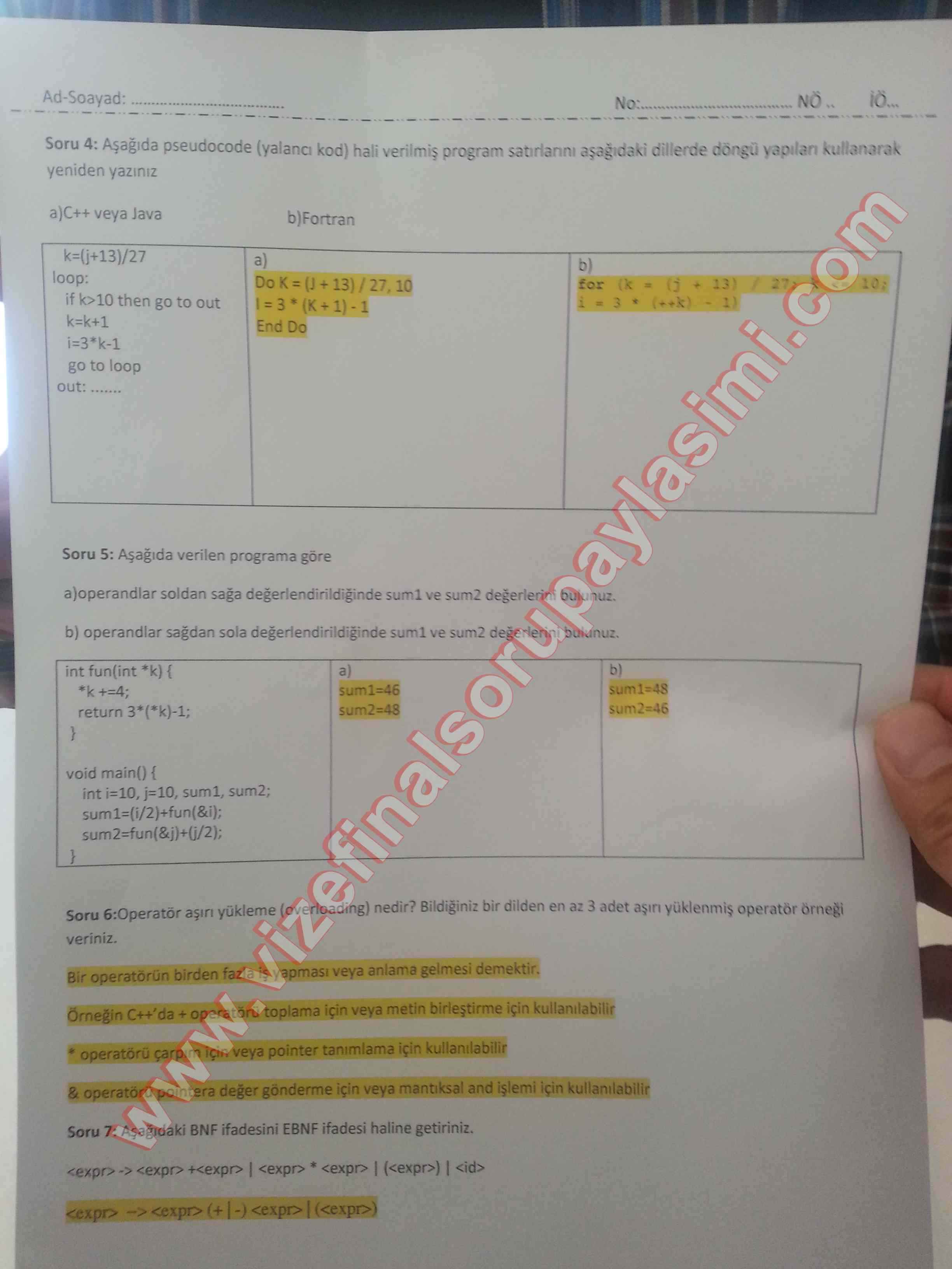 Programlama Dillerinin Prensibleri Vize Soruları Ve Cevapları-2015 23-04-2015, 19:48