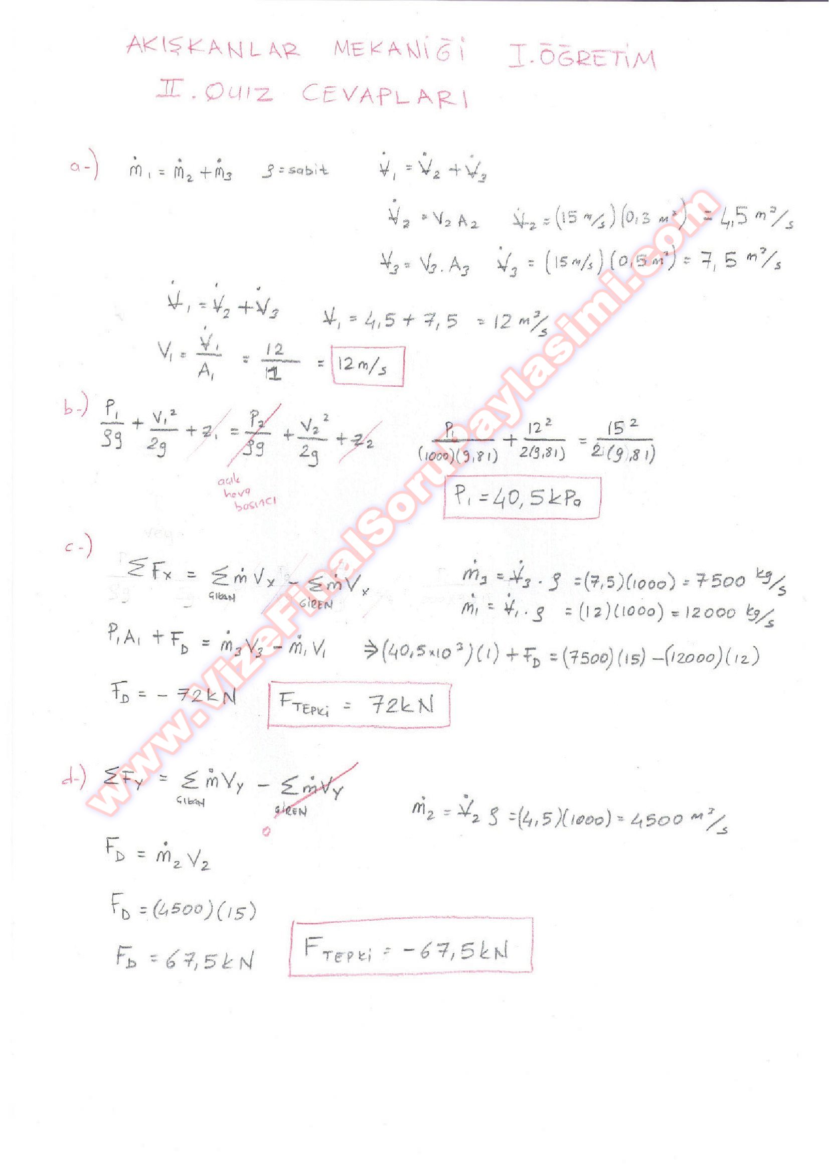 Akışkanlar Mekaniği 2. Vize Soruları ve Çözümleri 19-10-2014, 00:10