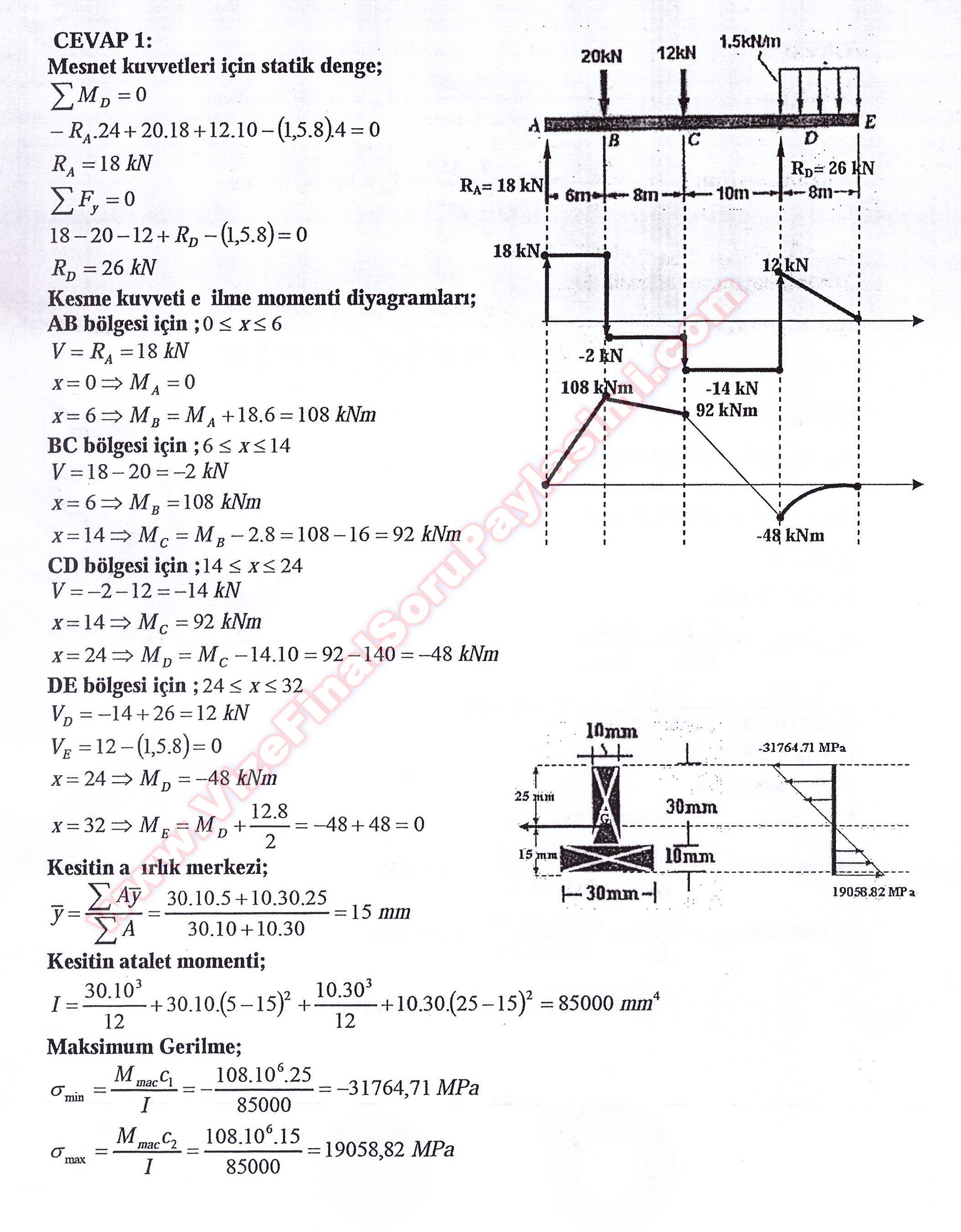 Mukavemet-1 calisma Sorulari Ve cozumleri