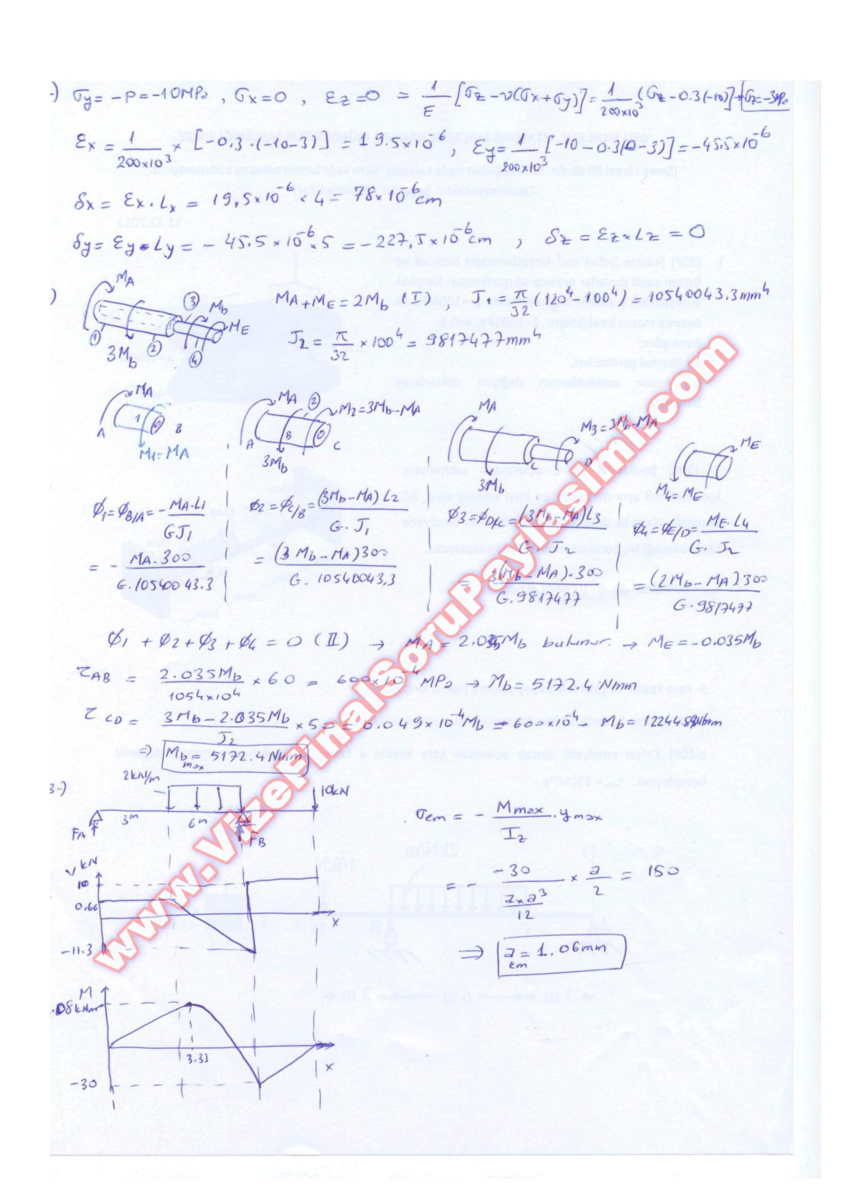 Matalurji ve Malzeme Mühendisliği Bölümü Mühendislik Mekaniği 2. Vize Soruları