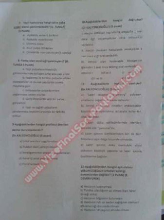 Vize ve Final Soruları / Ondokuz Mayıs Üniversitesi / Endodonti Dersi