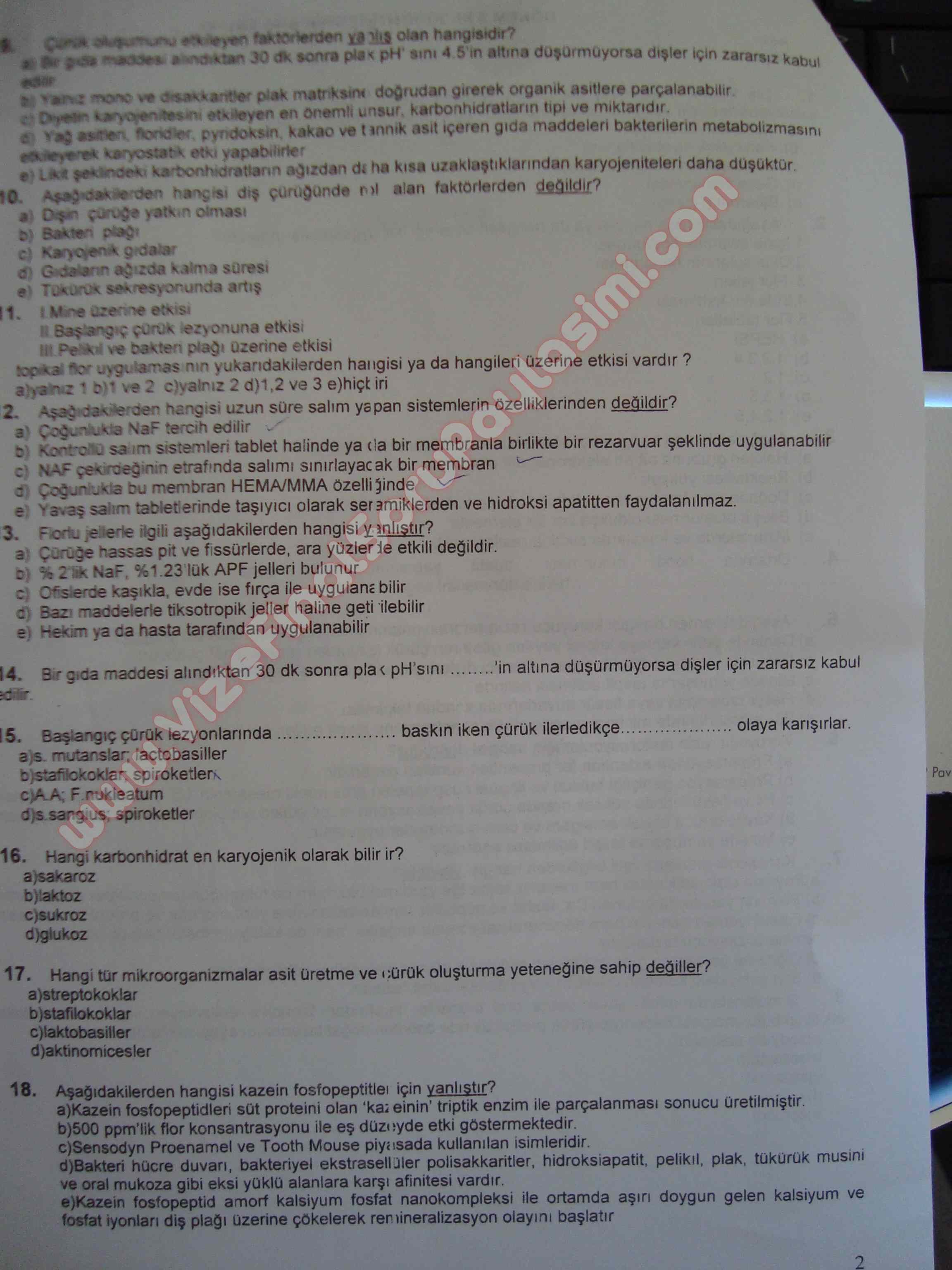 Vize ve Final Soruları / Ondokuz Mayıs Üniversitesi / Pedodonti Dersi