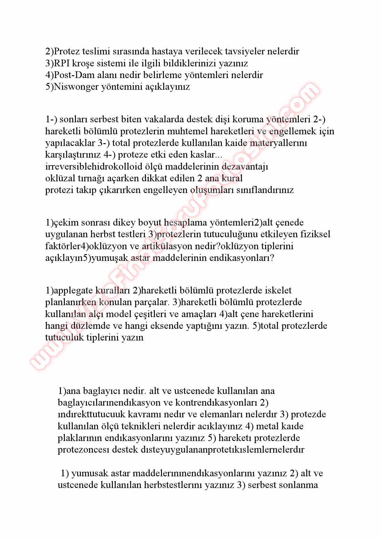 Protetik Diş Tedavisi Final Soruları 2013 11-11-2015, 23:51