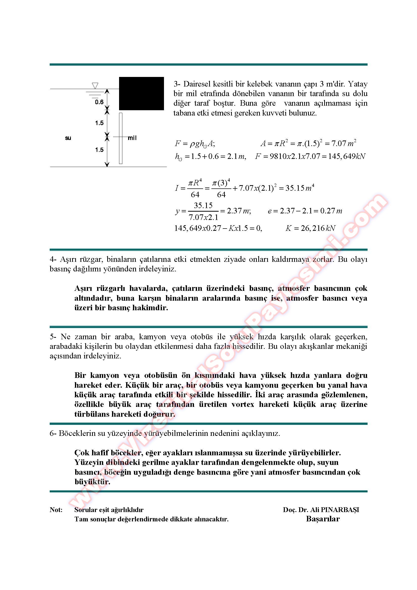 Vize ve Final Soruları / Cumhuriyet Üniversitesi / Akışkanlar Mekaniği
