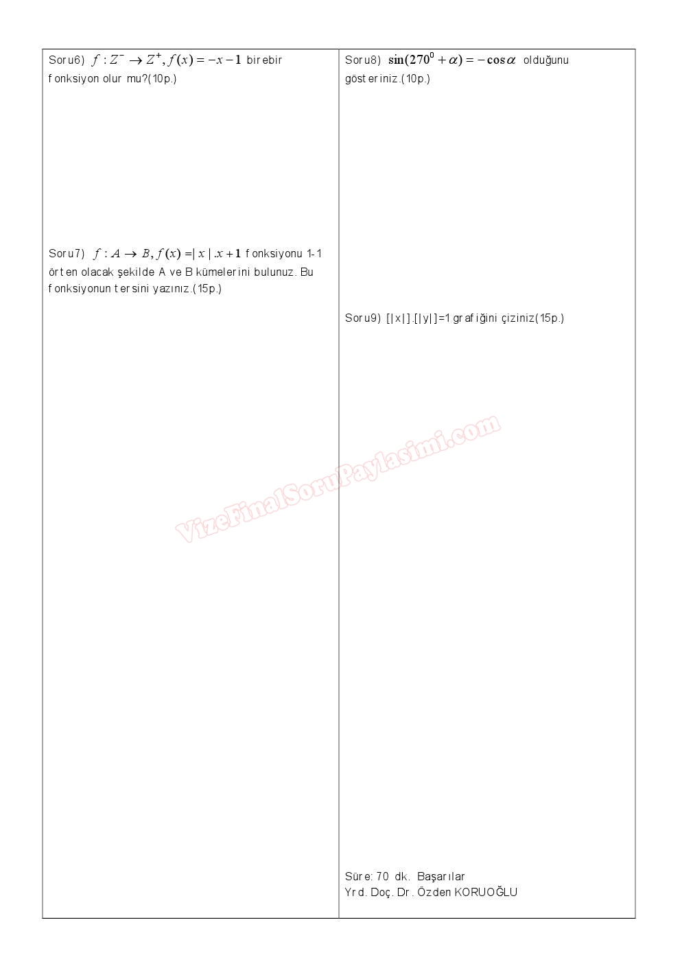 Genel Matematik Dersi Vize Soruları - 2014 16-11-2015, 01:55