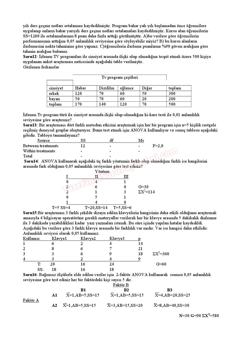 istatistik dersi final soruları Balıkesir Üniversitesi