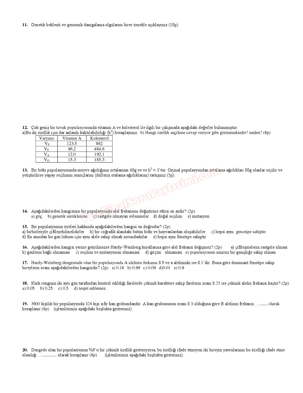 Genetik -1 Final Soruları -2004 5-07-2015, 00:55
