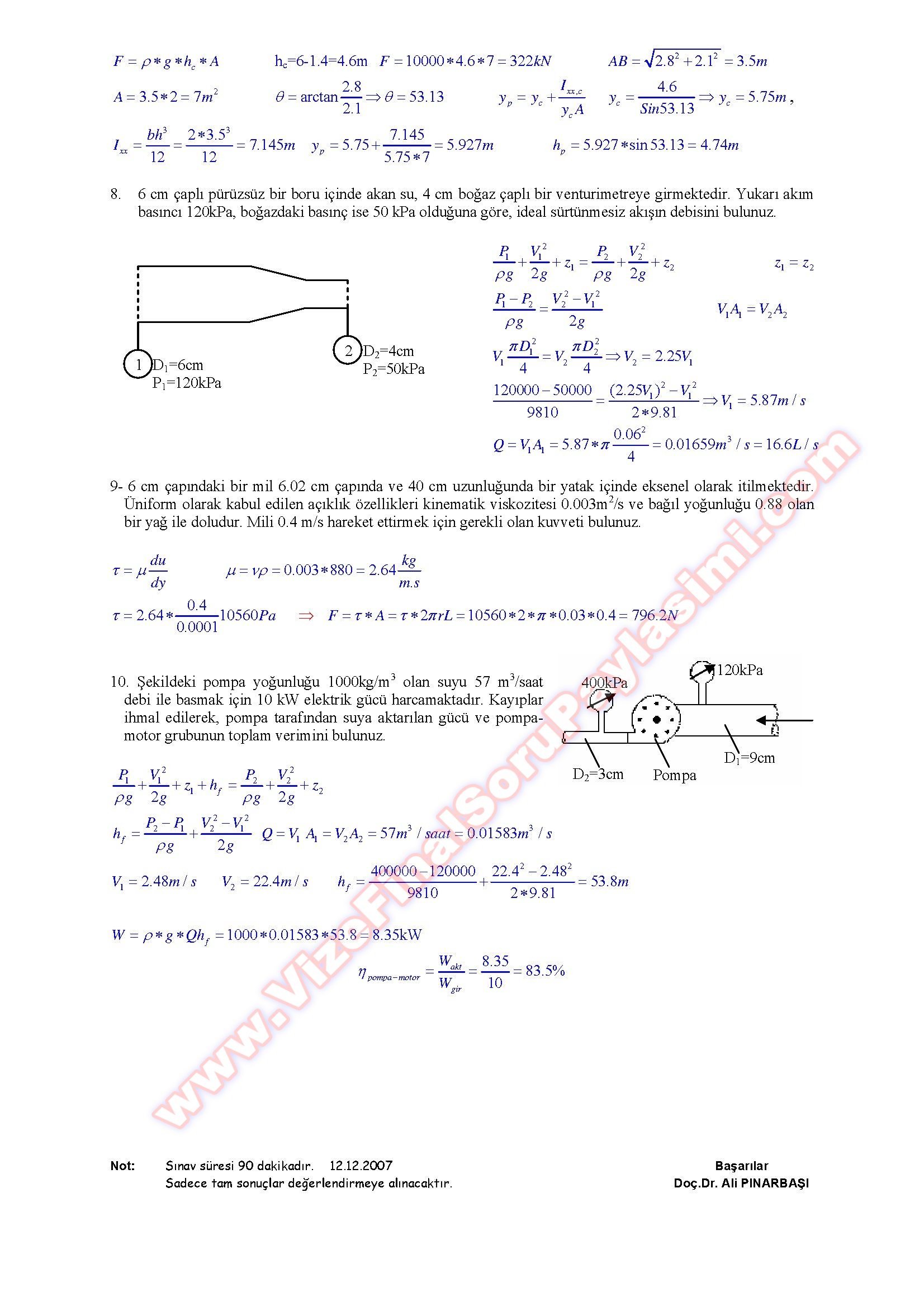 Vize ve Final Soruları / Cumhuriyet Üniversitesi / Akışkanlar Mekaniği