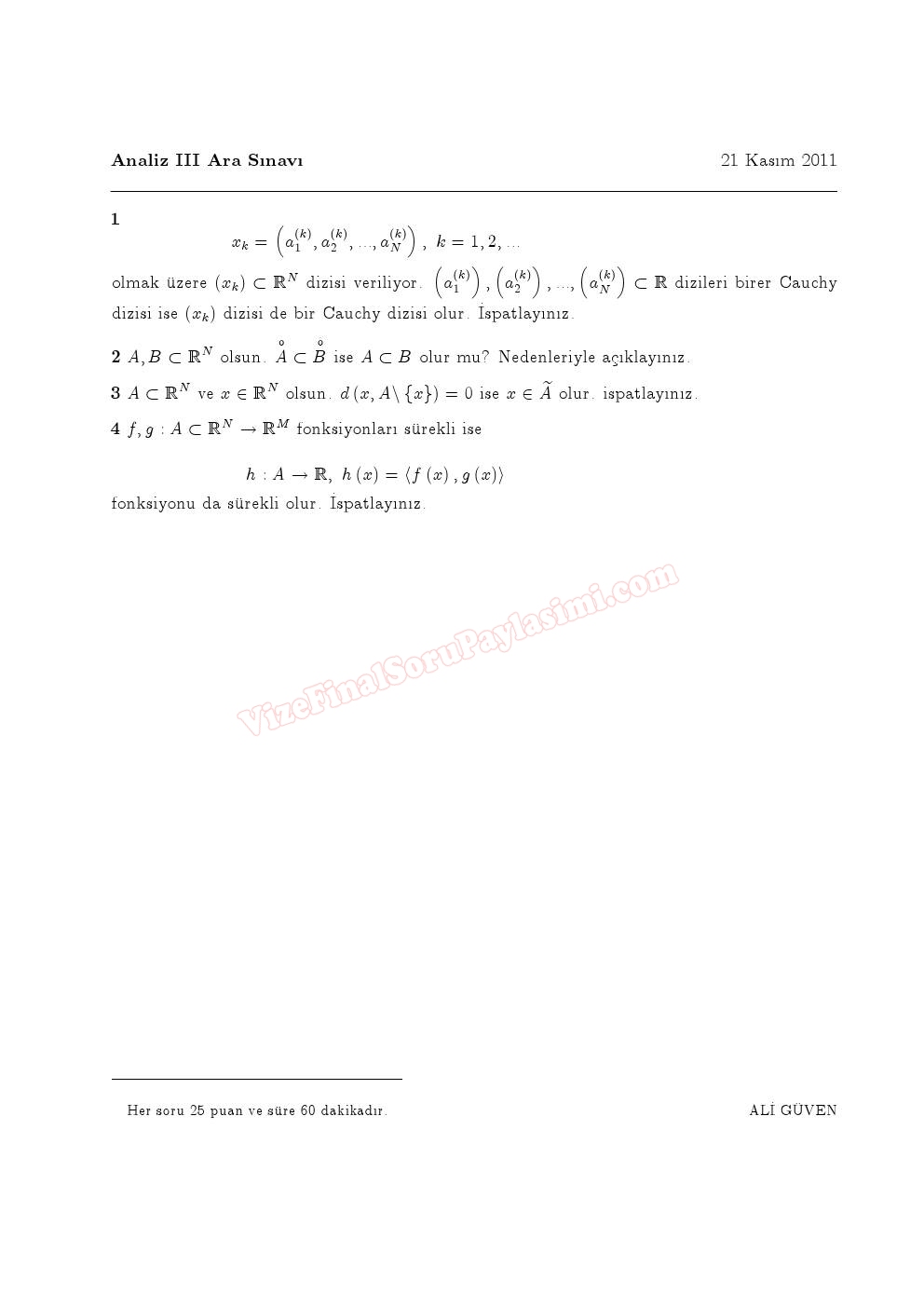 analiz 3 vize soruları Pamukkale Üniversitesi