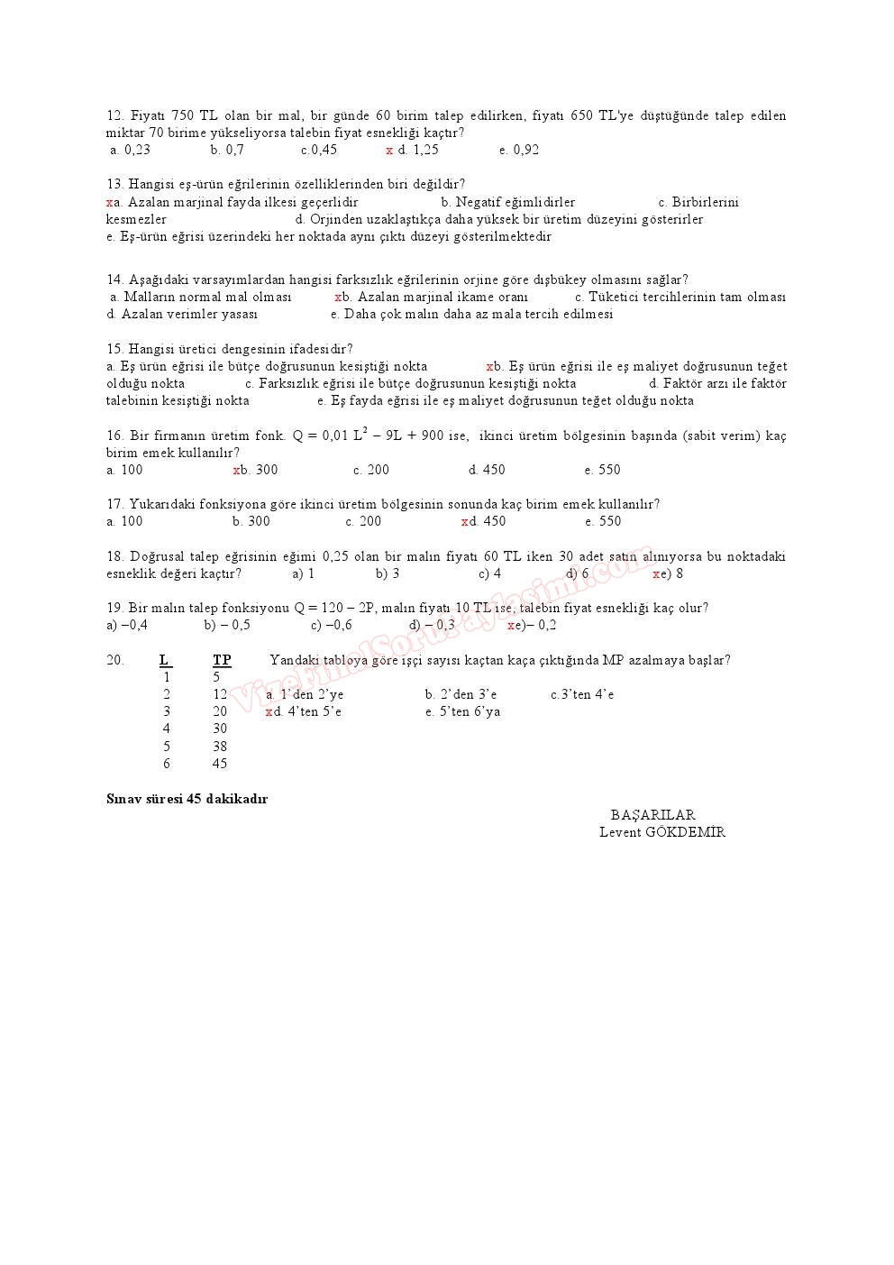Mikro İktisat Dersi Soruları 4-12-2015, 22:29
