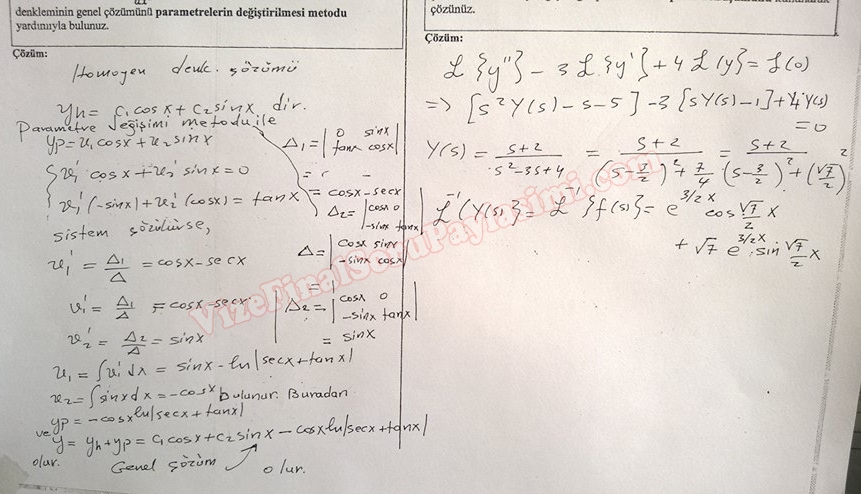Vize ve Final Soruları / Fırat Üniversitesi / Diferansiyel Denklemler