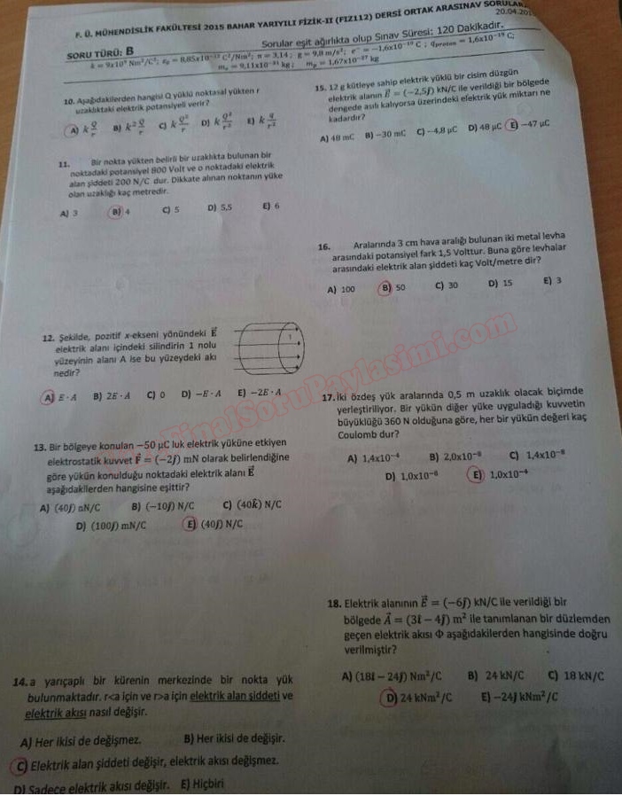 Vize ve Final Soruları / Fırat Üniversitesi / Fizik -2