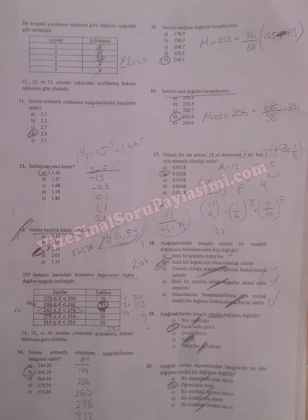 İstatistik ve Olasılık Final Soruları ve Cevapları 11-11-2015, 15:04