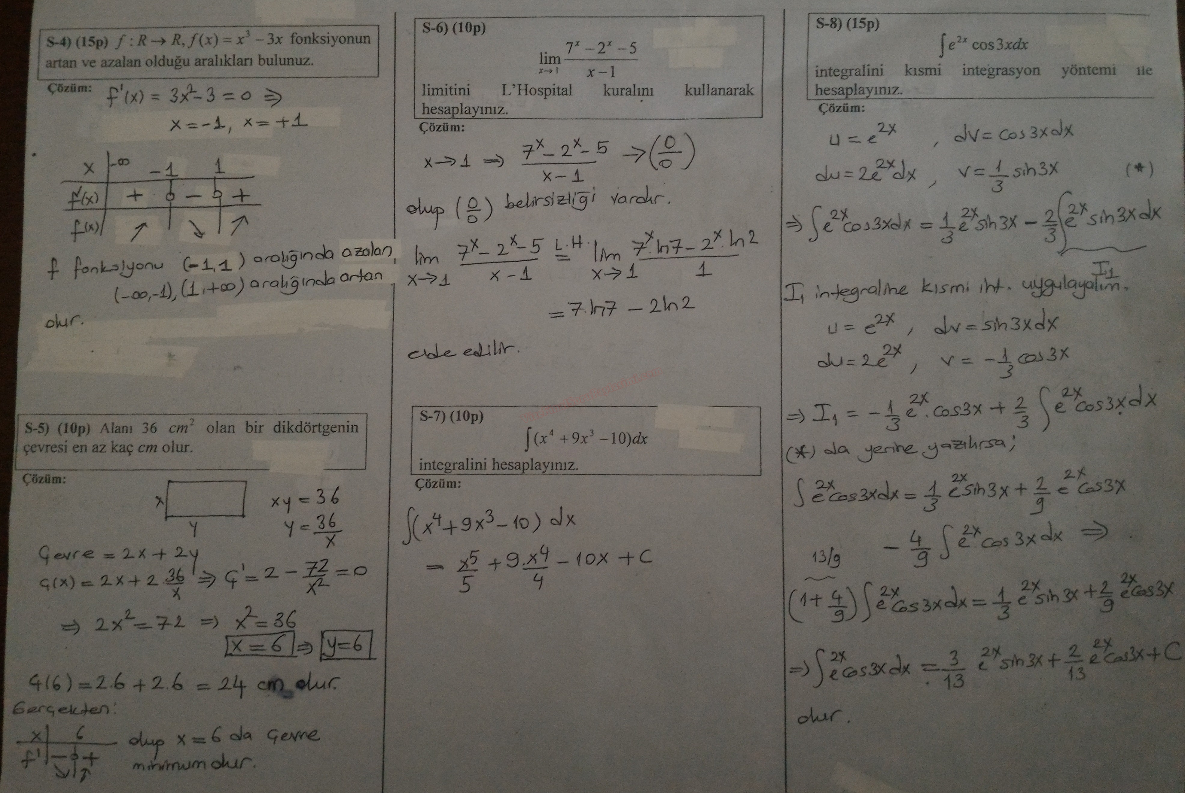 Matematik -2 Vize Soruları ve Cevapları - 2015 (Yaz Okulu) 29-08-2015, 23:51