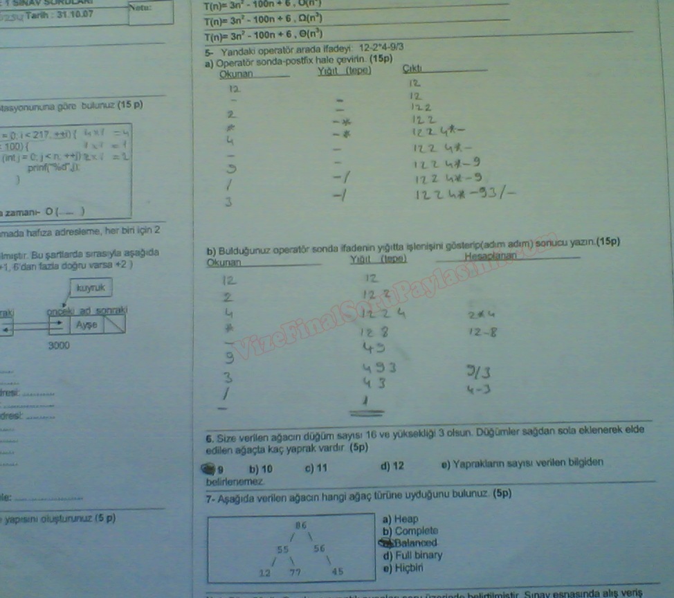 Veri Yapıları Dersi Final Soruları 21-07-2014, 17:36