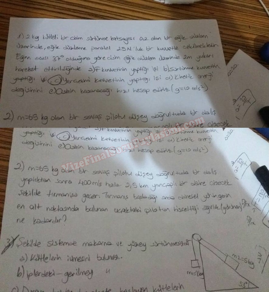 Fizik 1 Çalışma Soruları 2016