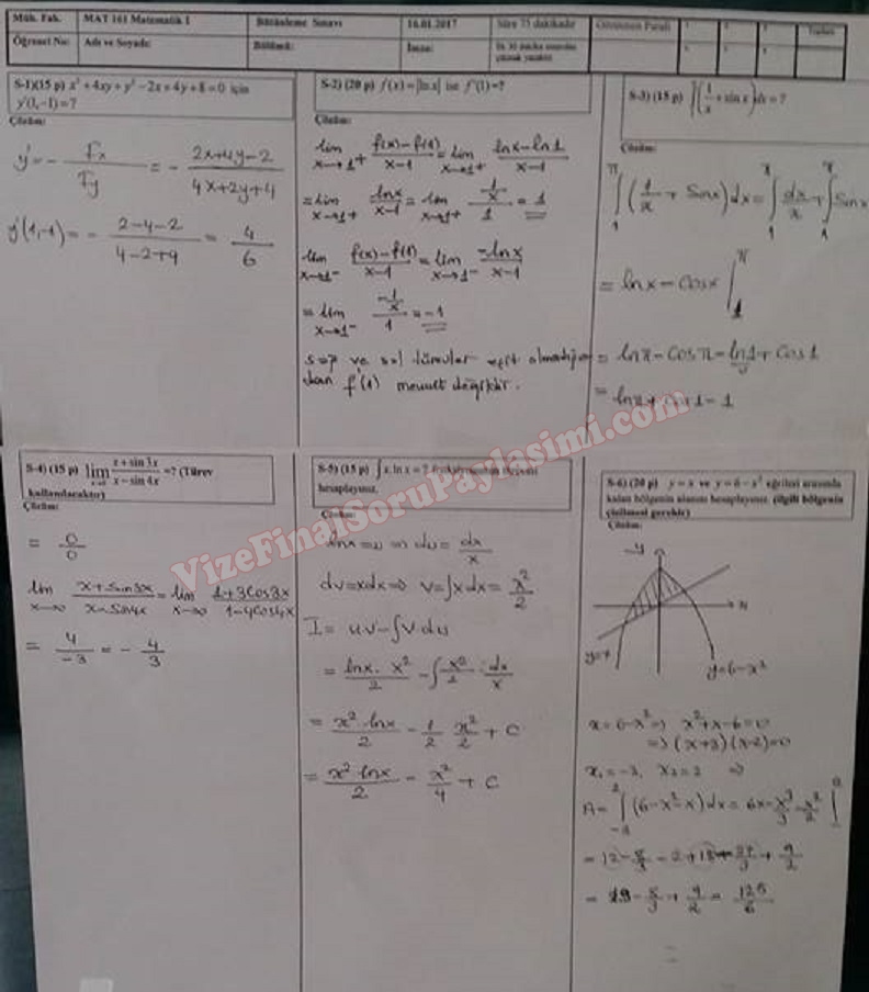 Vize ve Final Soruları / Fırat Üniversitesi / Matematik -1