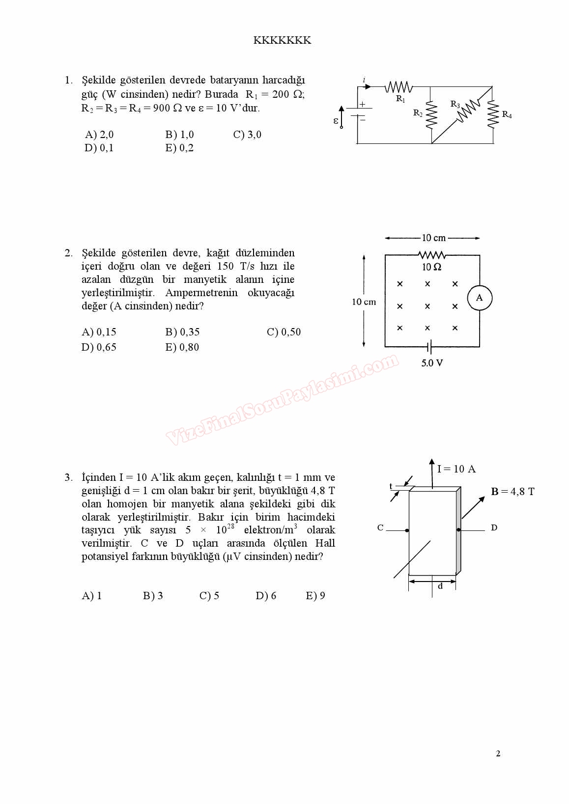 Vize ve Final Soruları / Düzce Üniversitesi / Fizik -2