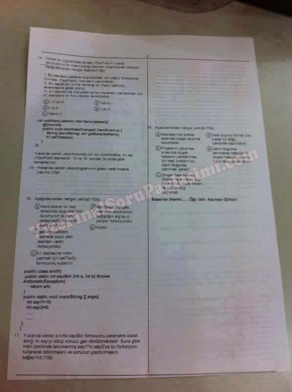 Karadeniz Teknik Üniversitesi Nesne Tabanli programlama yarıyıl sonu sınav soruları