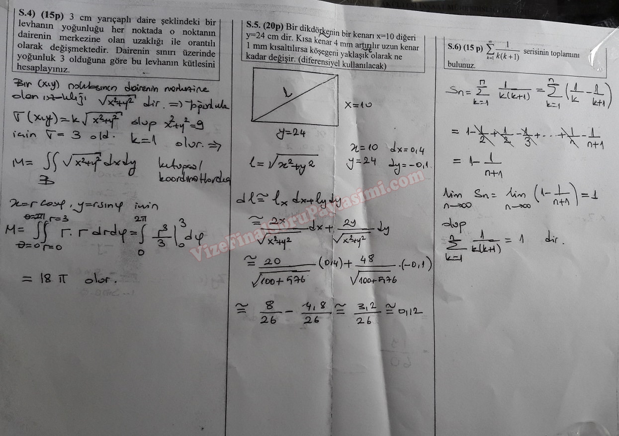 Matematik -2 Bütünleme Soruları ve Çözümleri - 2017 30-05-2017, 01:16
