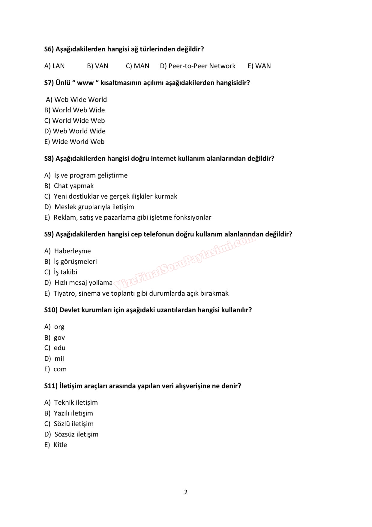 Vize ve Final Soruları / Dumlupınar Üniversitesi / Etkili İletişim Dersi