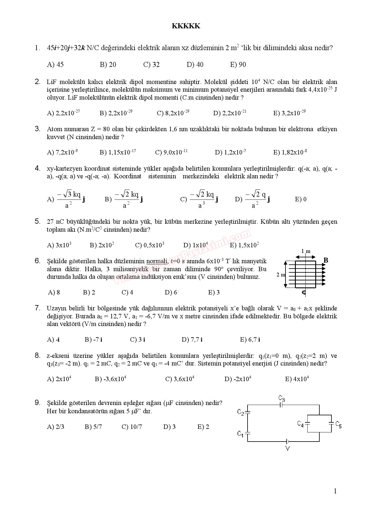 Vize ve Final Soruları / Düzce Üniversitesi / Fizik -2