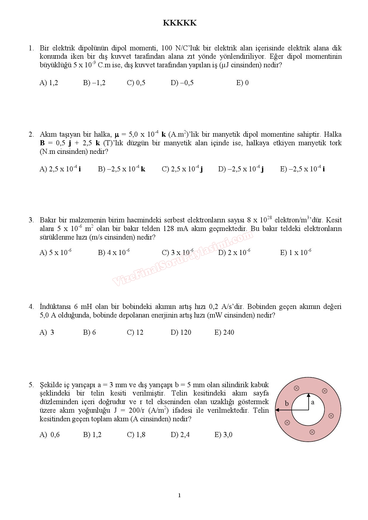 Vize ve Final Soruları / Düzce Üniversitesi / Fizik -2